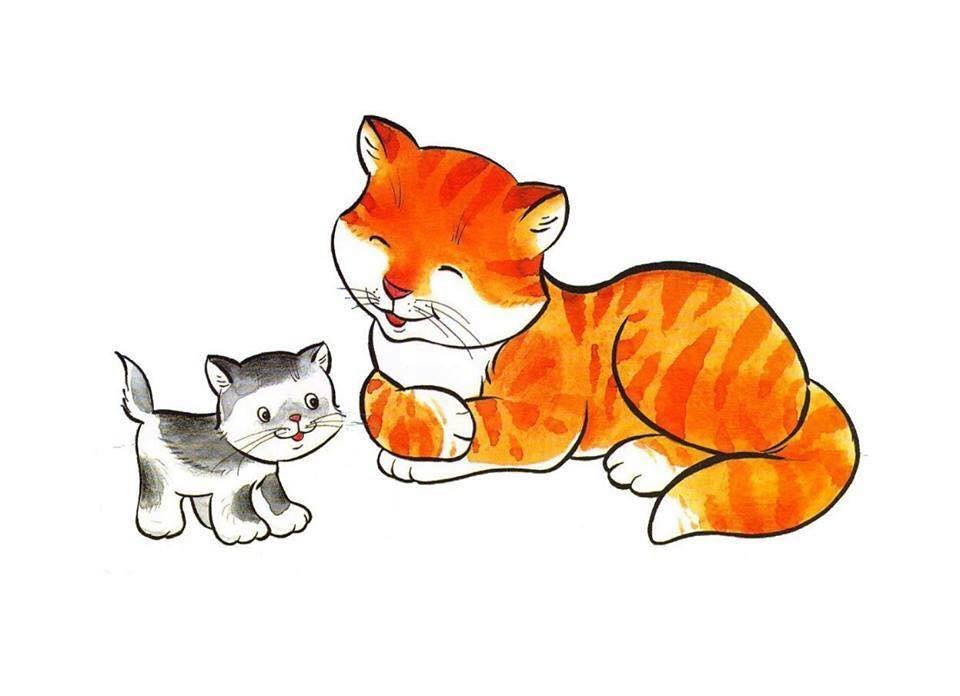 Кошка и котенок для детей