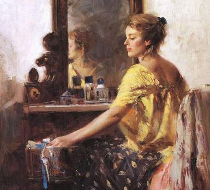Картина "Девушка перед зеркалом" - это потрясающее произведение искусства, которое захватывает взгляд с первого взгляда. На полотне изображена молодая женщина, глядящая на свое отражение в зеркале. Выразительная поза и выразительный взгляд девушки вызывают смешанные чувства - отражение ее лица наполнено самопознанием и рассмотрением собственной красоты. Каждая линия и каждая деталь художественно переданы, создавая ощущение глубокой интимности и размышлений. Картина вызывает восхищение своей технической мастерством и эмоциональной глубиной, переносит зрителя в мир внутренних переживаний и самоанализа. Это произведение искусства является отличным выбором для тех, кто ценит красоту и глубину человеческой души.