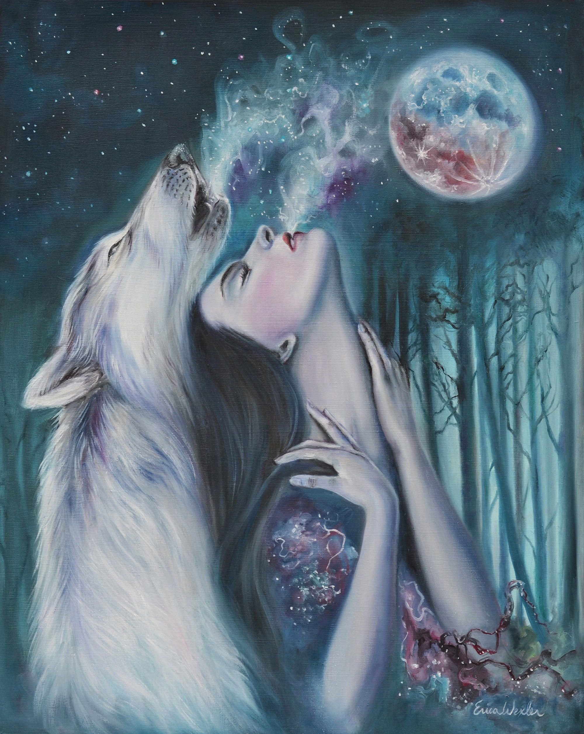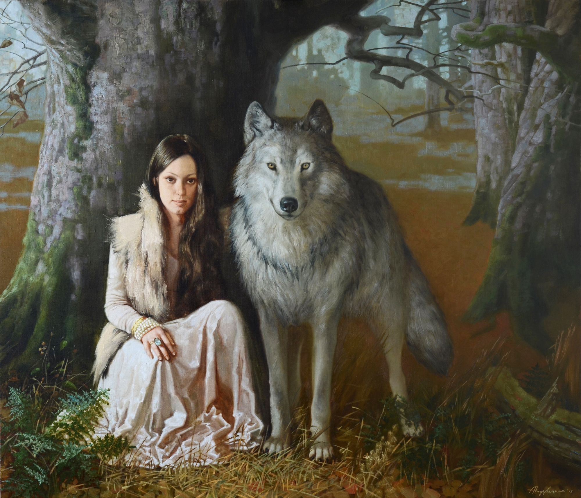 "Волк и девушка" - это захватывающая картина, которая воспроизводит сюжетное сочетание между волком и молодой женщиной. На этом произведении искусства изображена фантастическая атмосфера, где кажется, что пространство и время сливаются в одно целое. Взгляды волка и девушки переплетаются, создавая загадочную связь между этими двумя разными мирами. Картина погружает зрителя в глубокую мыслительную рефлексию о природе человека и его взаимодействии с животным миром. Талант художника превращает эту картину в настоящее произведение искусства, которое оставляет неизгладимое впечатление на всех, кто ее видит.
