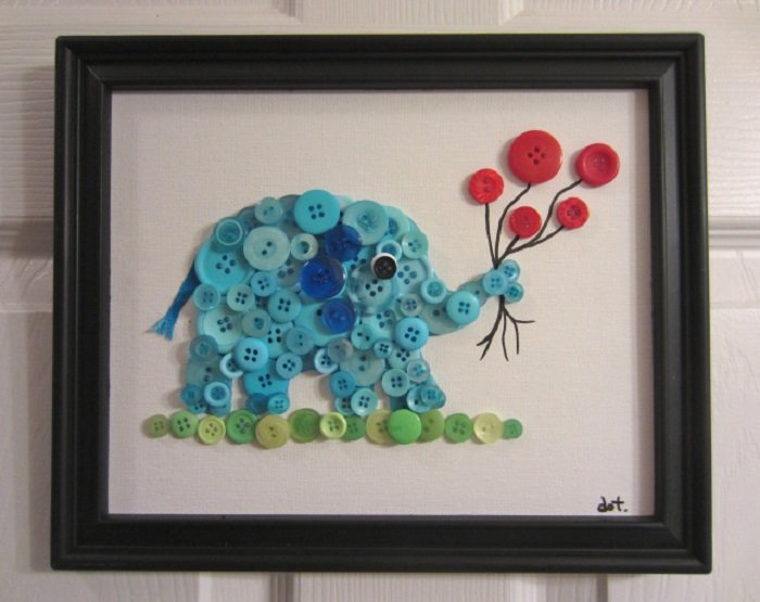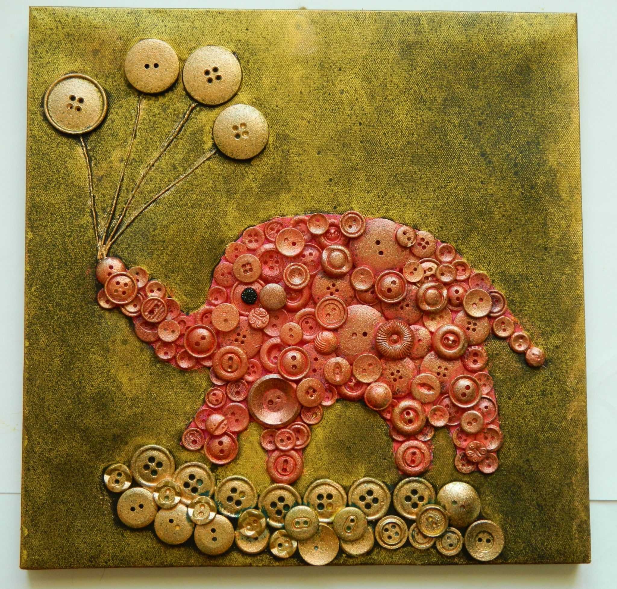 Панно слон из пуговиц