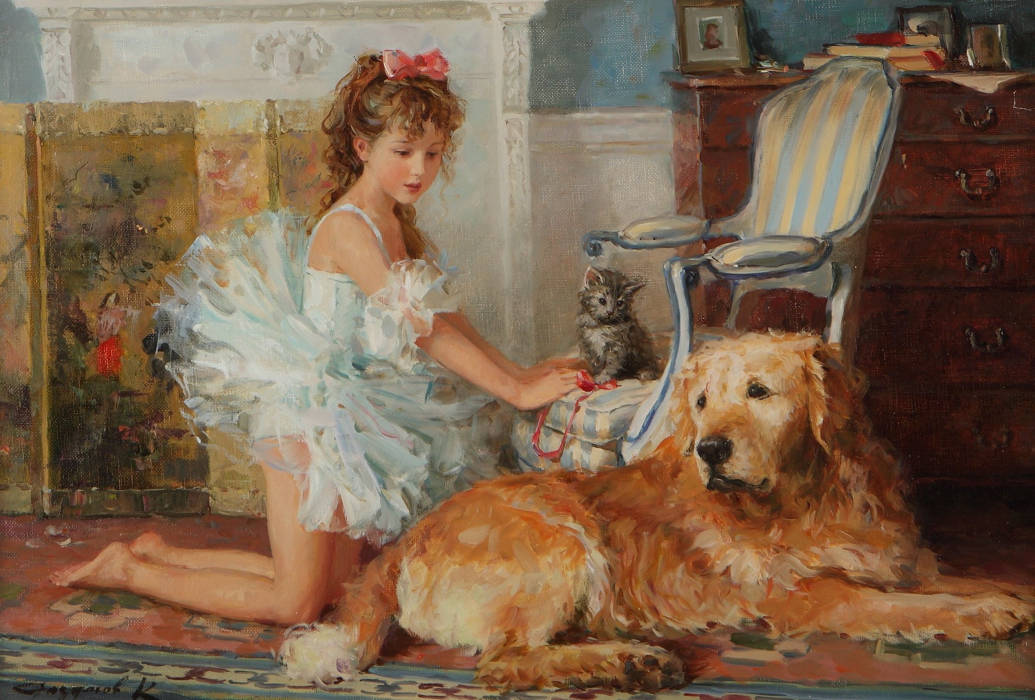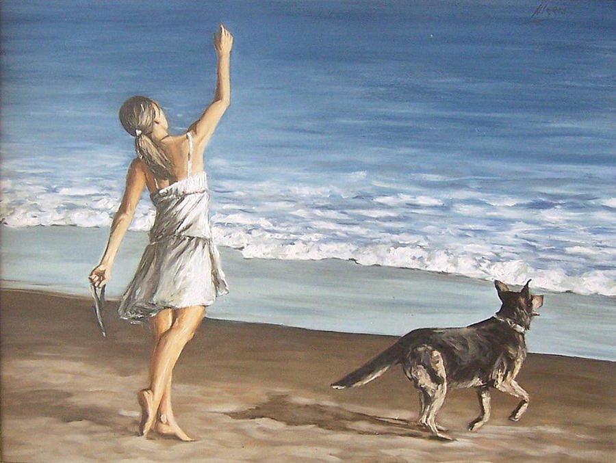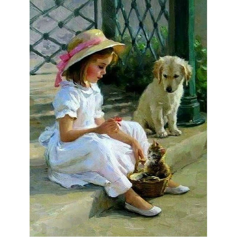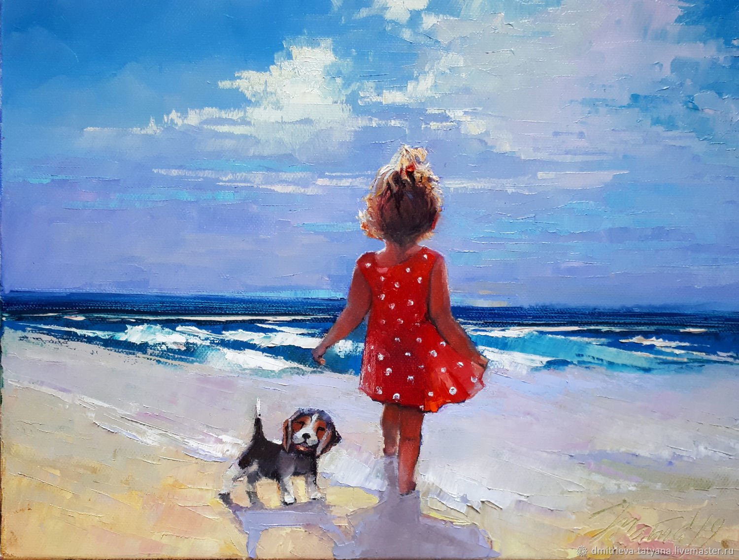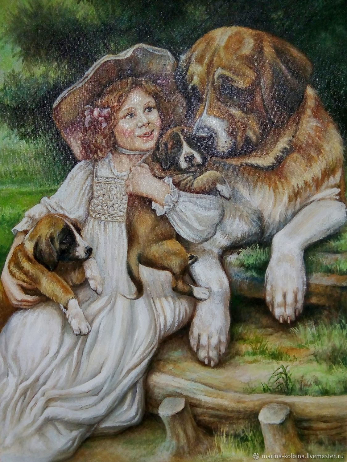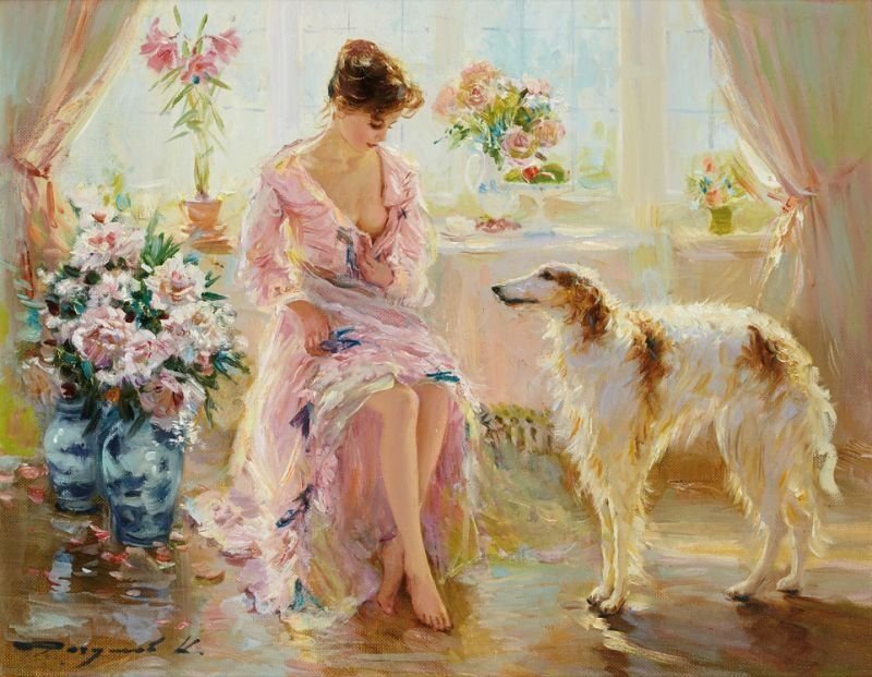 "Девушка с собакой" - картина, которая притягивает внимание своей нежностью и эмоциональностью. На полотне изображена молодая женщина, сидящая на скамейке в парке, рядом с ней верная пес дружелюбно улыбается. Взаимное проникновение глаз героини и ее питомца передано с такой теплотой и искренностью, что создается ощущение живого общения и привязанности. Картина наполнена атмосферой спокойствия и радости, заставляющей зрителя на время забыться и перенестись в мир беззаботного счастья и любви к животным. Это произведение идеально подойдет для интерьера дома или офиса, добавляя в него нотки тепла и умиротворения. Она станет прекрасным дополнением к коллекции любителя искусства и является отличным подарком для всех, кто ценит эстетику и прекрасные моменты, которые дарят нам наши четвероногие друзья.