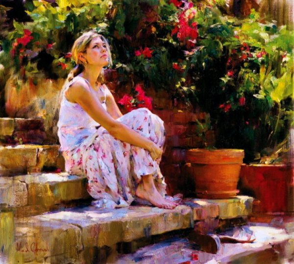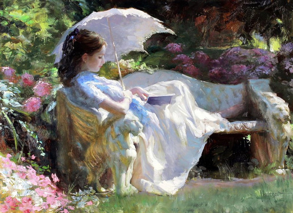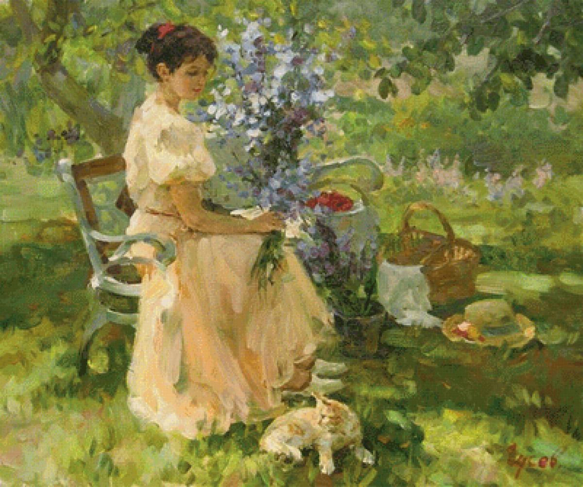 Картины Владимир Волегов девушка в саду