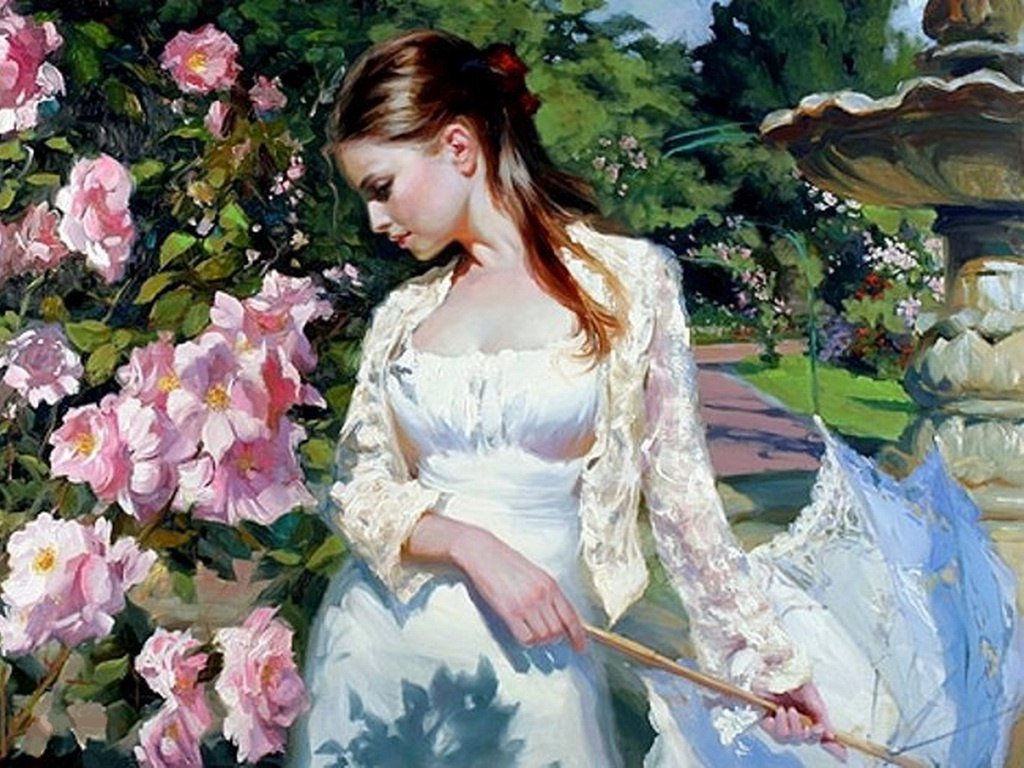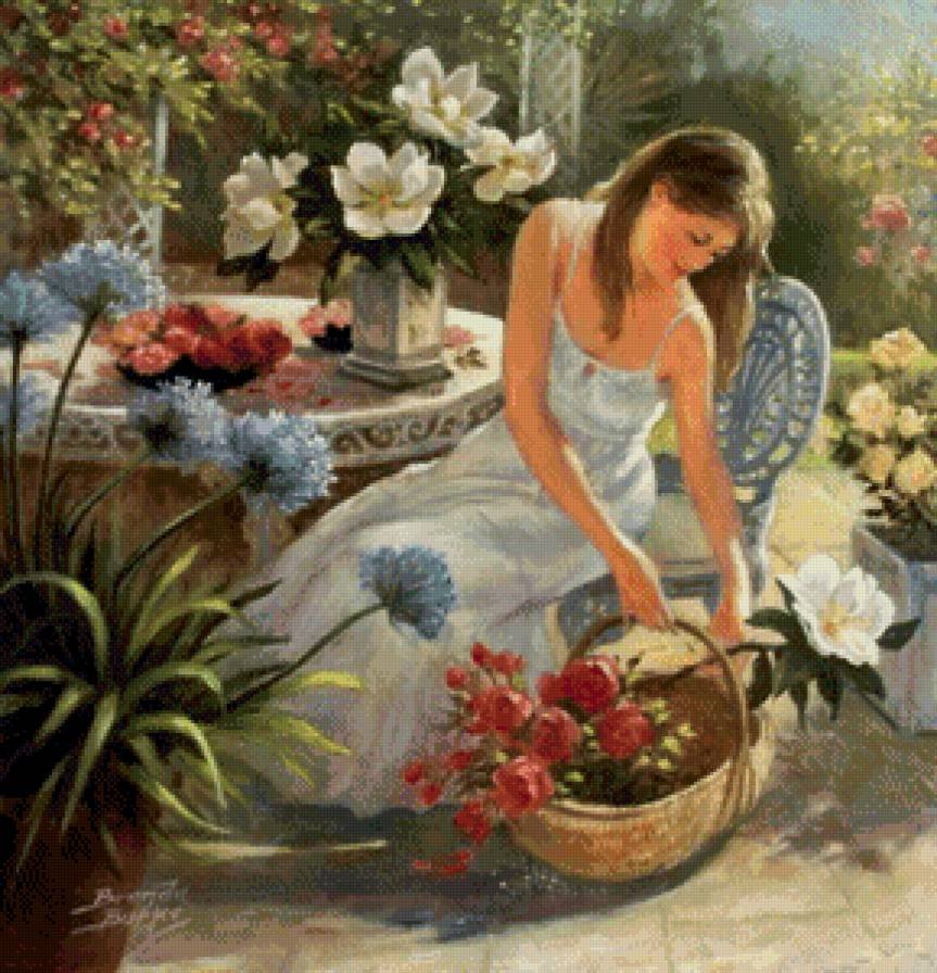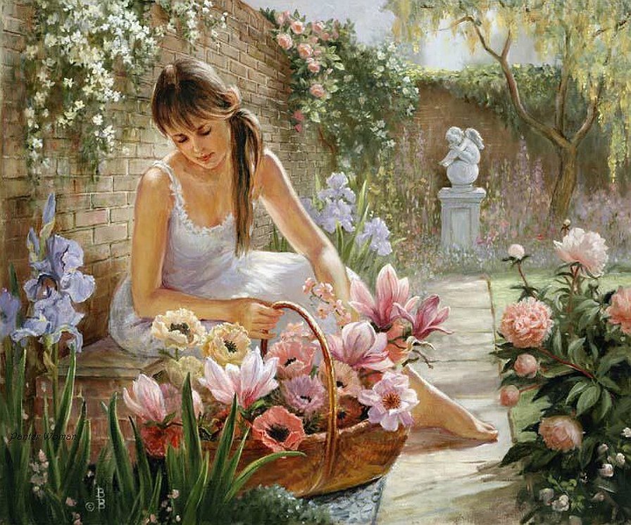 Женщина в цветущем саду - живопись