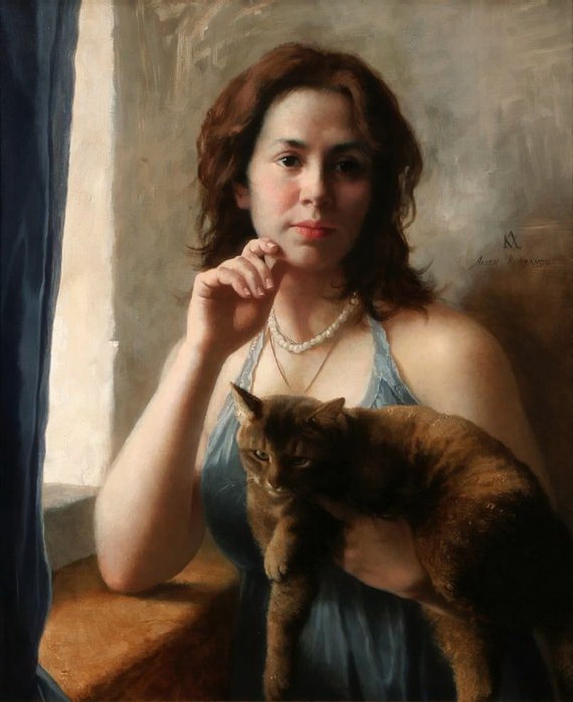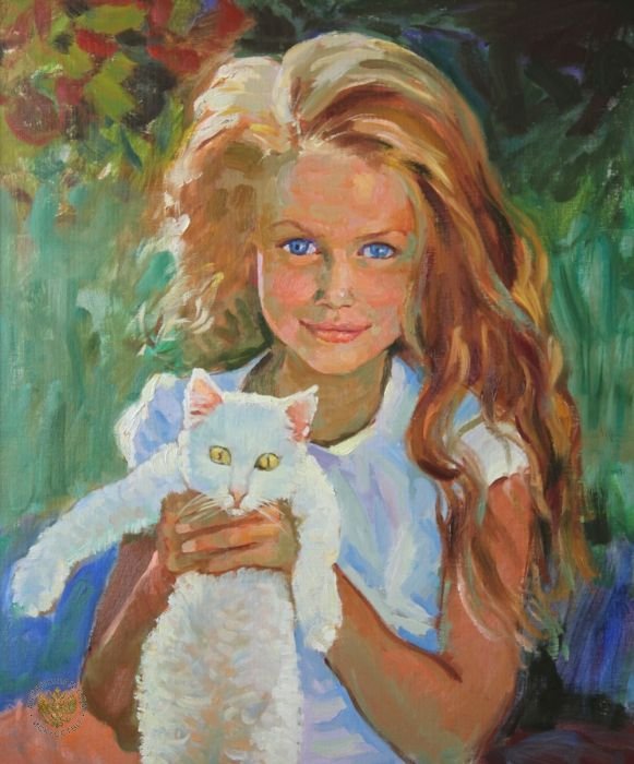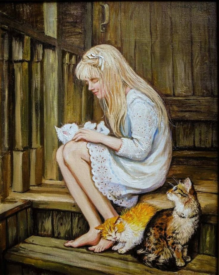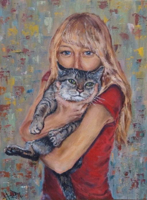 "Девушка с котом" - это прекрасная картина, которая пленит своим нежным и трогательным образом. В этой работе художник улавливает мгновение доверительной связи между человеком и животным. Нежный взгляд девушки на ее пушистого спутника вызывает теплые и положительные эмоции у зрителя. Картину отличает гармоничное сочетание цветов и мягкое освещение, которые создают атмосферу умиротворения и спокойствия. "Девушка с котом" - это произведение искусства, которое радует глаз и наполняет сердце теплотой и любовью к природе и животному миру.
