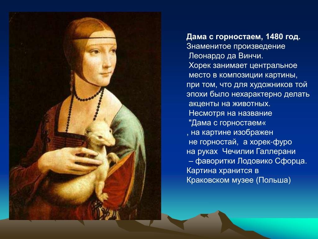 Картины эпохи Возрождения Леонардо да Винчи девушка с горностаем