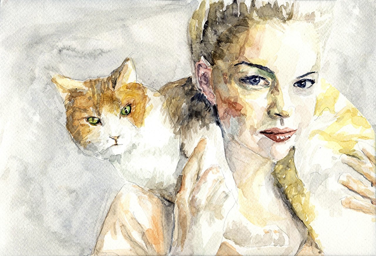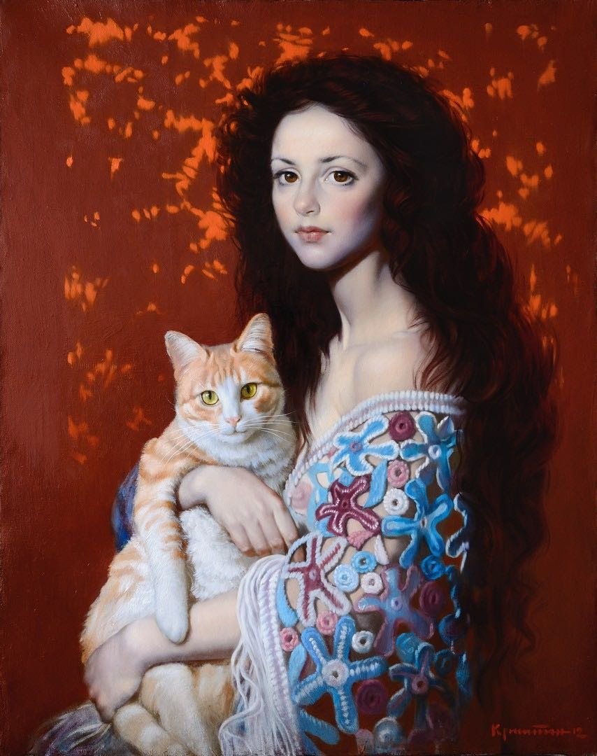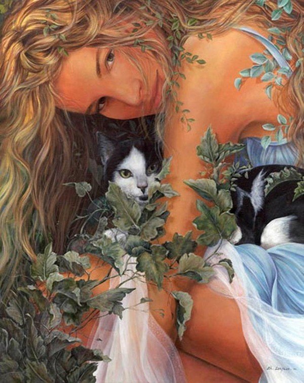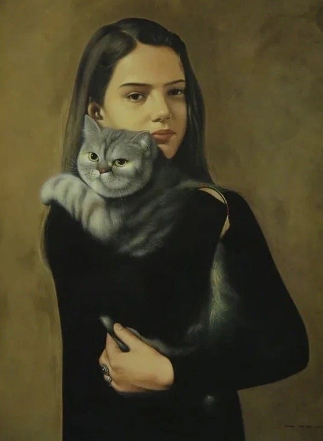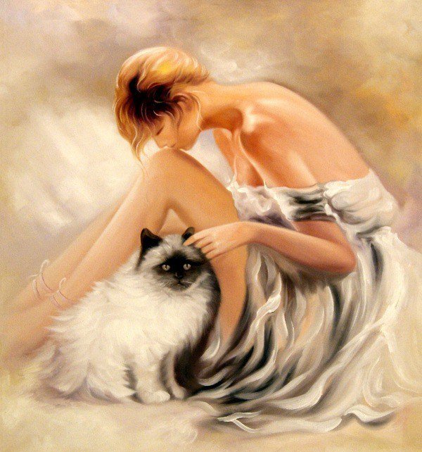 Девушка с котом в живописи