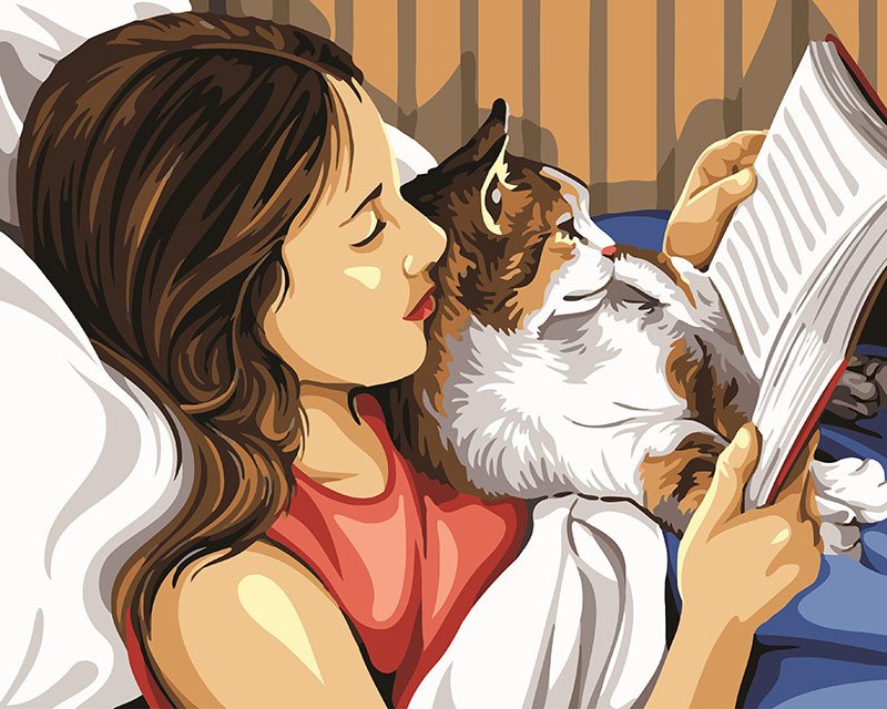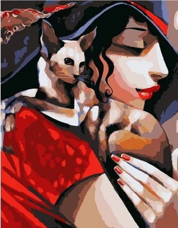 Картина девушка с котом