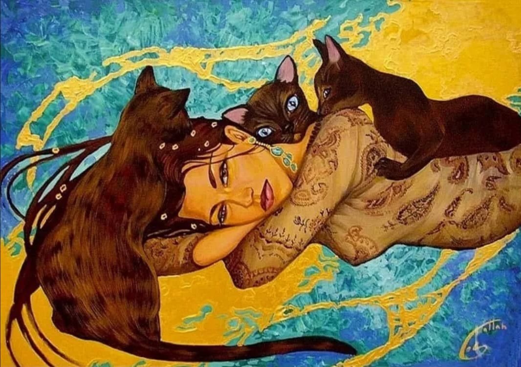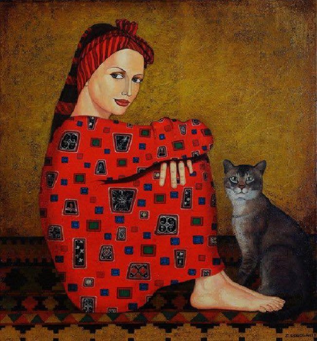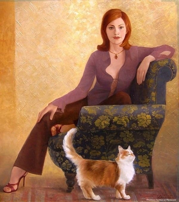 Женщина с котом живопись