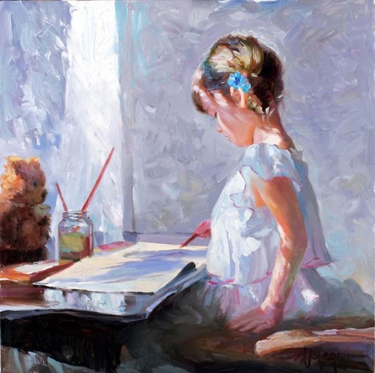Впереди тебя разворачивается живописная сцена: девушка, сидящая за столом. Ее изящные пальцы легко скользят по белой бумаге, на которой располагаются разноцветные краски. Она полностью погружена в свои мысли и творчество, создавая настоящую картину. В ее глазах можно увидеть искреннюю радость и вдохновение, которые переносятся на холст. Ее работа - это не просто картина, а отражение ее самой: ее эмоций, мыслей и чувств. Ее профессионализм и талант видны в каждом мазке кисти, в каждой детали рисунка. Картина, созданная этой девушкой, способна перенести зрителя в другой мир, наполненный красотой и гармонией. Она доказывает, что искусство может быть магическим и трогательным одновременно, оставляя незабываемый след в сердцах людей.
