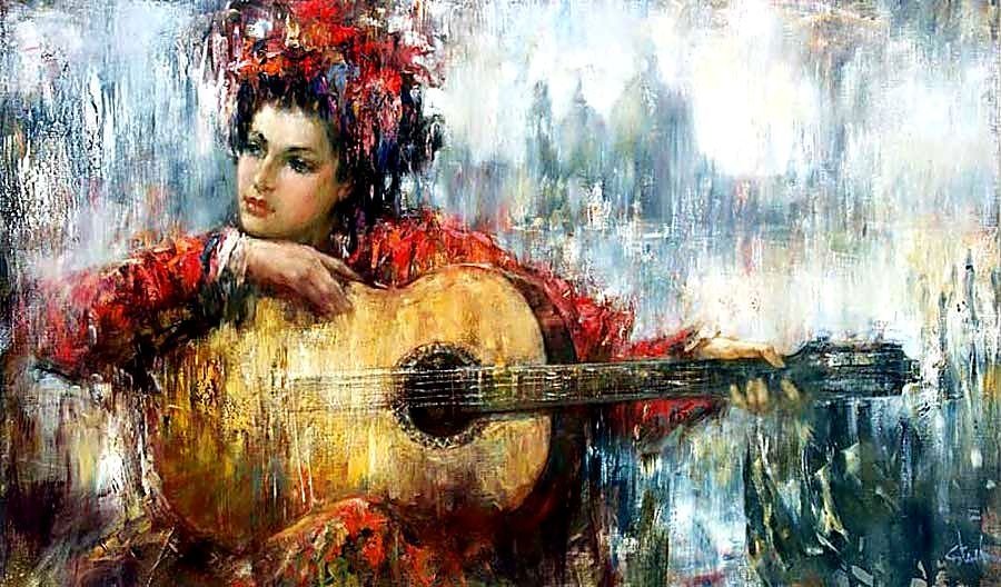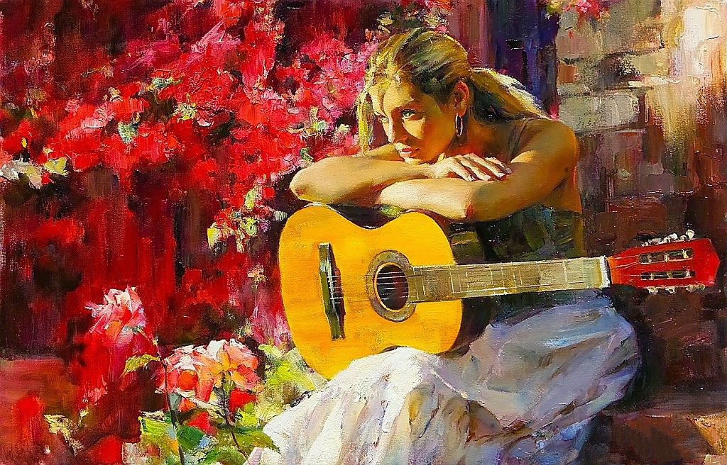 Картина "Девушка с гитарой" - это великолепное произведение искусства, которое привлекает внимание своей нежной и романтической атмосферой. На этой картине изображена красивая молодая женщина, держащая в руках гитару. Ее взгляд полон тайны и эмоций, а поза выражает ее страсть к музыке. Художник умело передал каждую деталь: от фактуры инструмента до освещения и цветовой гаммы. Картина "Девушка с гитарой" является прекрасным выбором для любителей искусства, которые ценят красоту и эмоциональную глубину.
