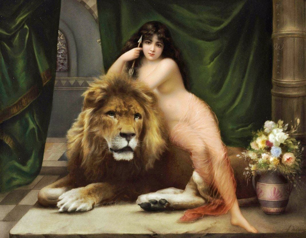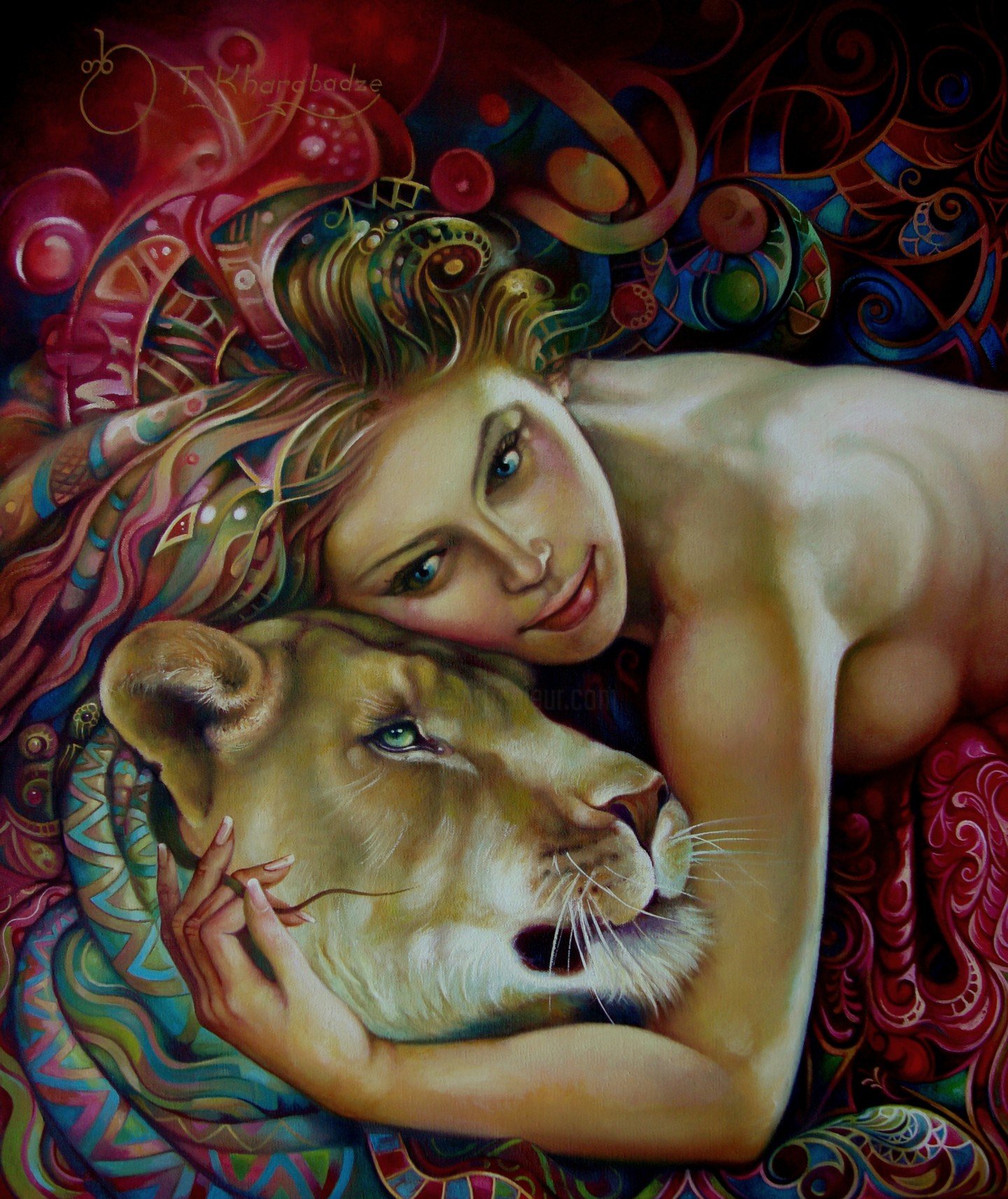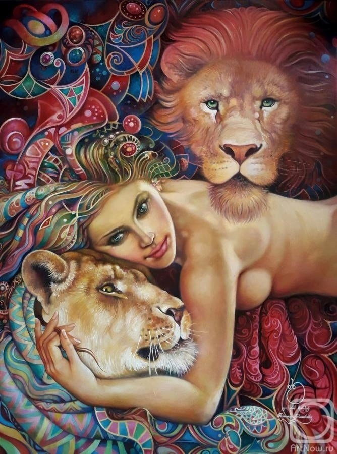 Картина "Девушка со львом" - это прекрасное произведение искусства, которое восхищает своей красотой и загадочностью. На ней изображена молодая женщина, обнявшая величественного льва, символизирующего силу и власть. Их взгляды переплетаются, словно они обмениваются тайными мыслями и эмоциями. Художник блестяще передал их энергетику и связь, создавая уникальную атмосферу на полотне. Картина "Девушка со львом" является истинным шедевром, который не оставит равнодушными ценителей искусства и поклонников живописи.