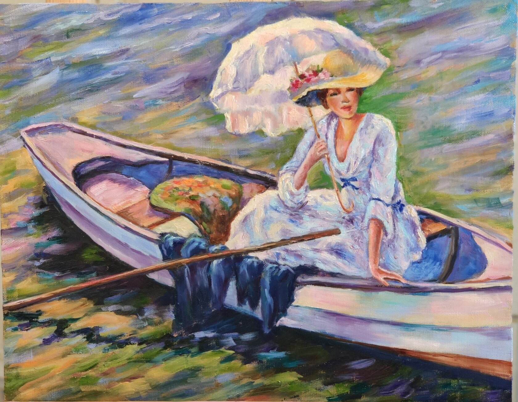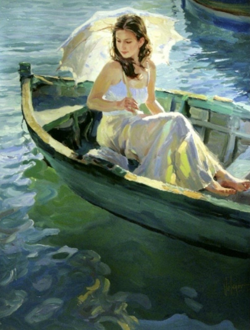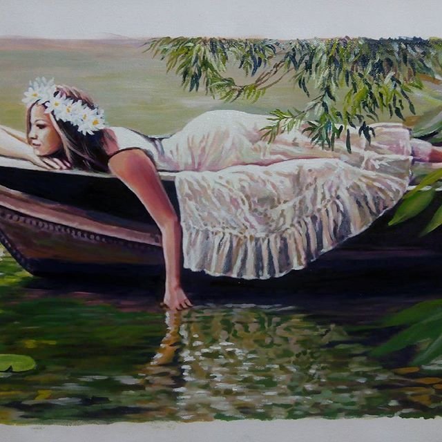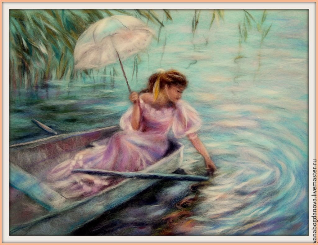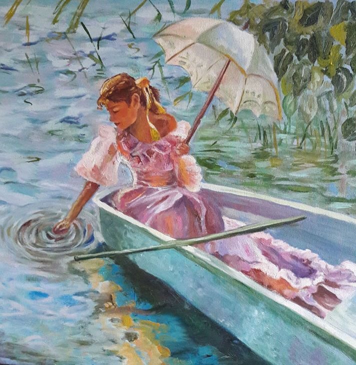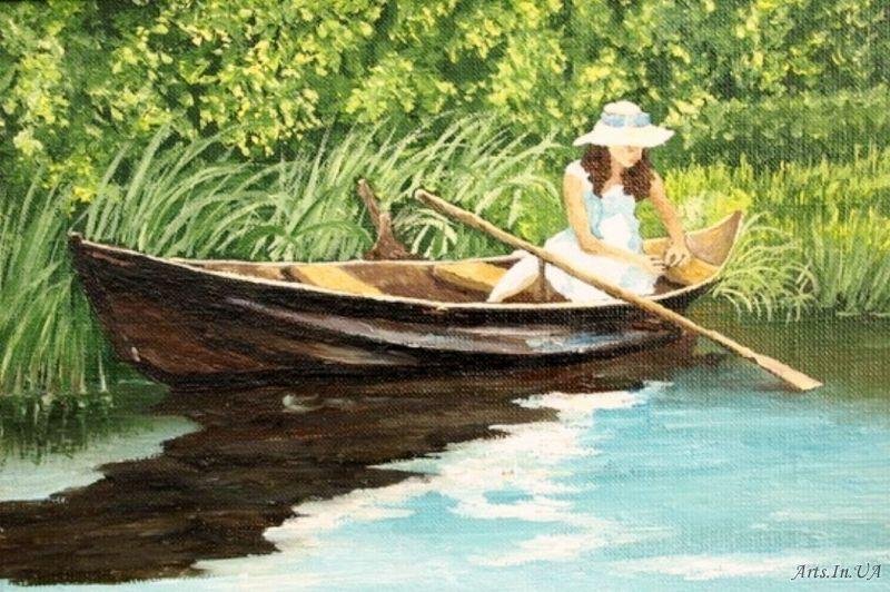 Картина маслом девушка в лодке