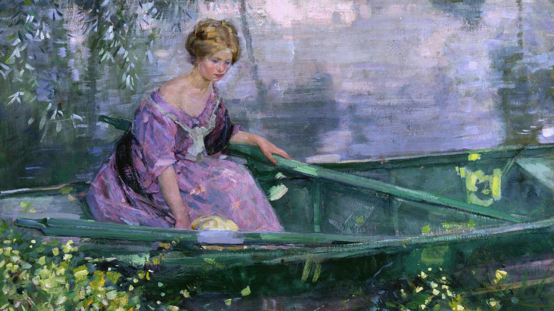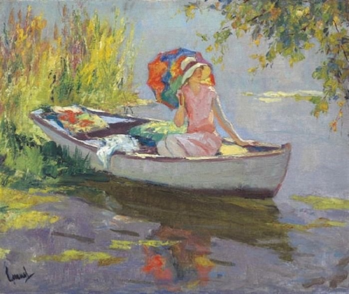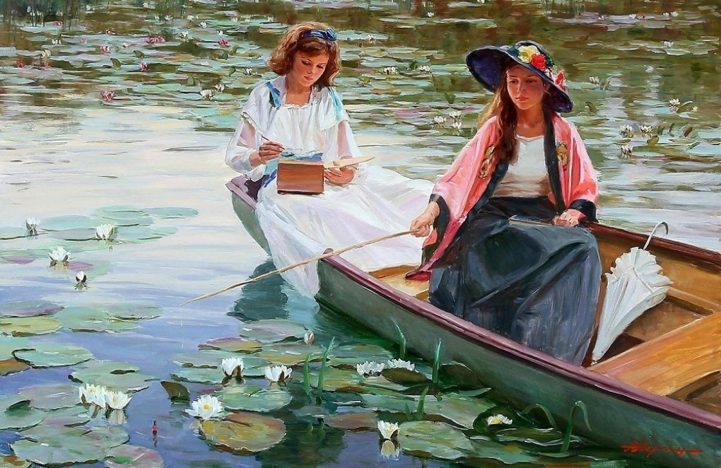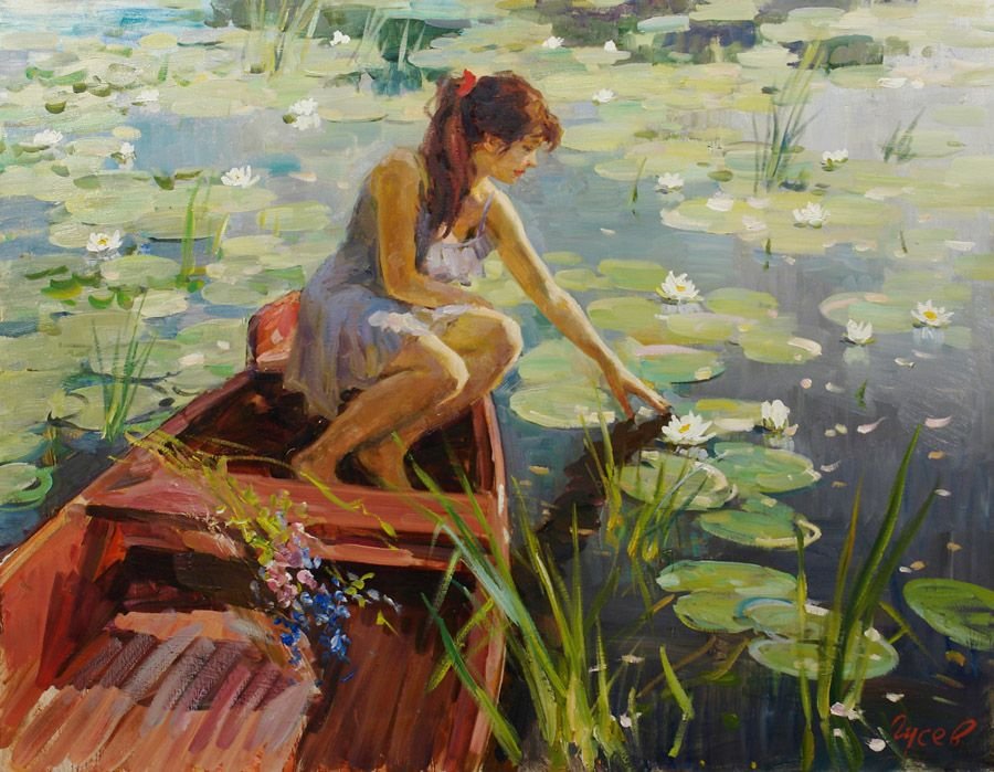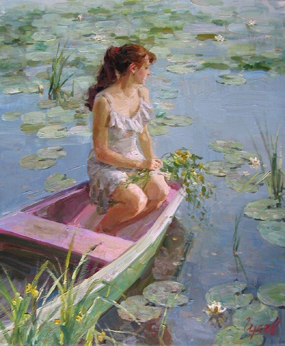 Девушка в лодке живопись