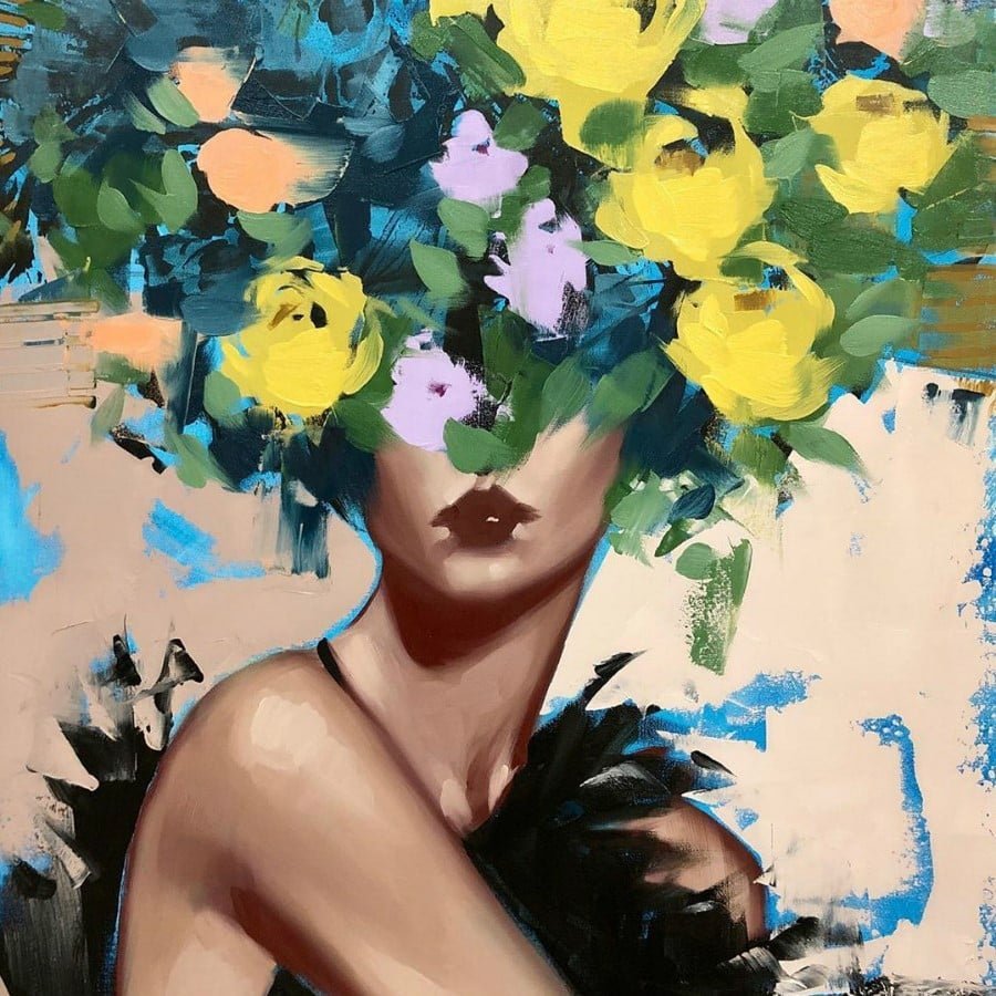 Девушка с цветами на голове живопись