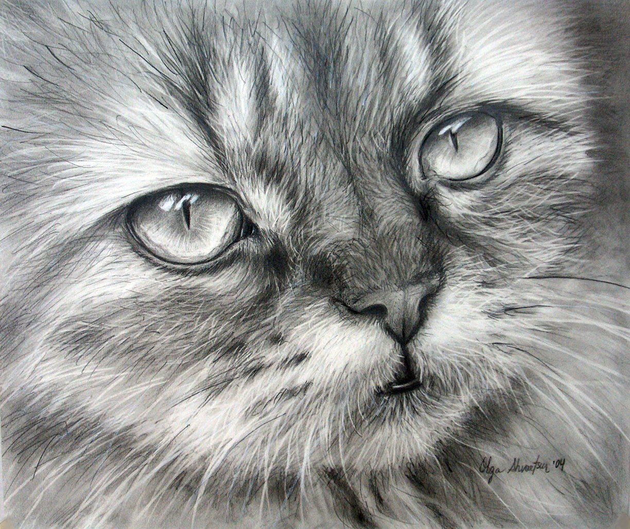 Красивый рисунок кошки карандашом