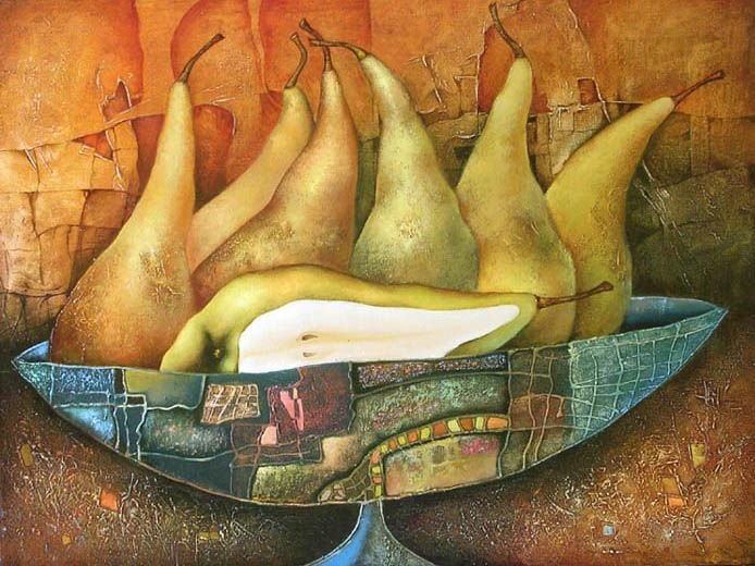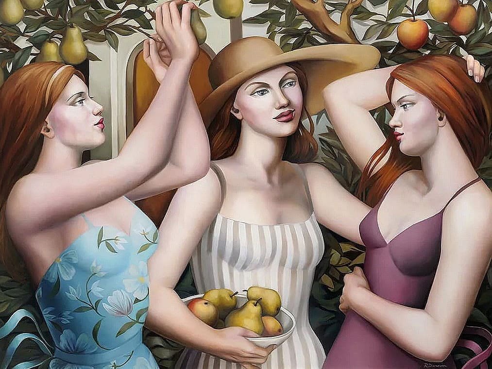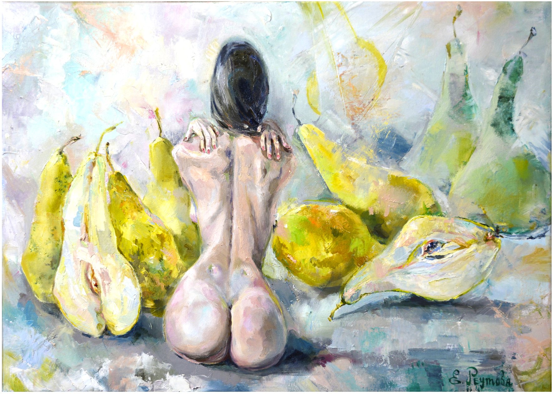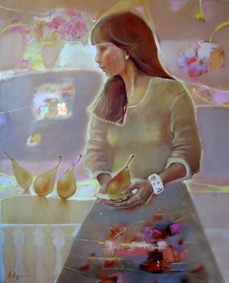 "Девушка с грушами" - прекрасная картина, созданная известным художником. На этом произведении искусства запечатлена фигура молодой женщины, держащей в руках две сочные груши. Картина полна нежности и таинственности, передавая образ женской красоты и элегантности. Художник уделяет особое внимание мельчайшим деталям, отображая текстуру плодов, отражения света и тени на их поверхности. Композиция полна гармонии и баланса, что придает картине особую привлекательность. "Девушка с грушами" является настоящим произведением искусства, которое способно вызвать у зрителей различные эмоции и впечатления.