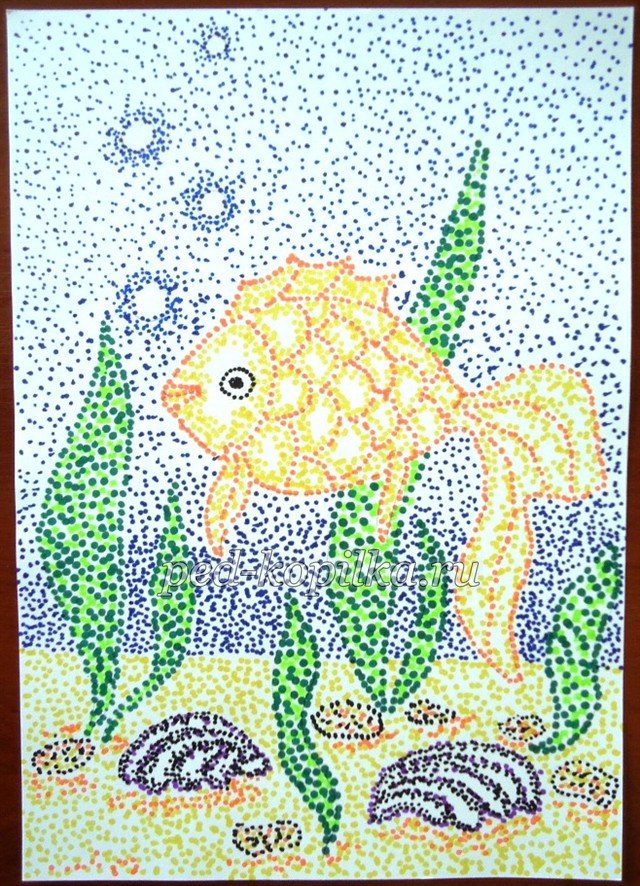 Золотая рыбка пуантилизм