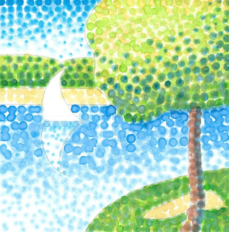 Морской пейзаж техника пуантилизм