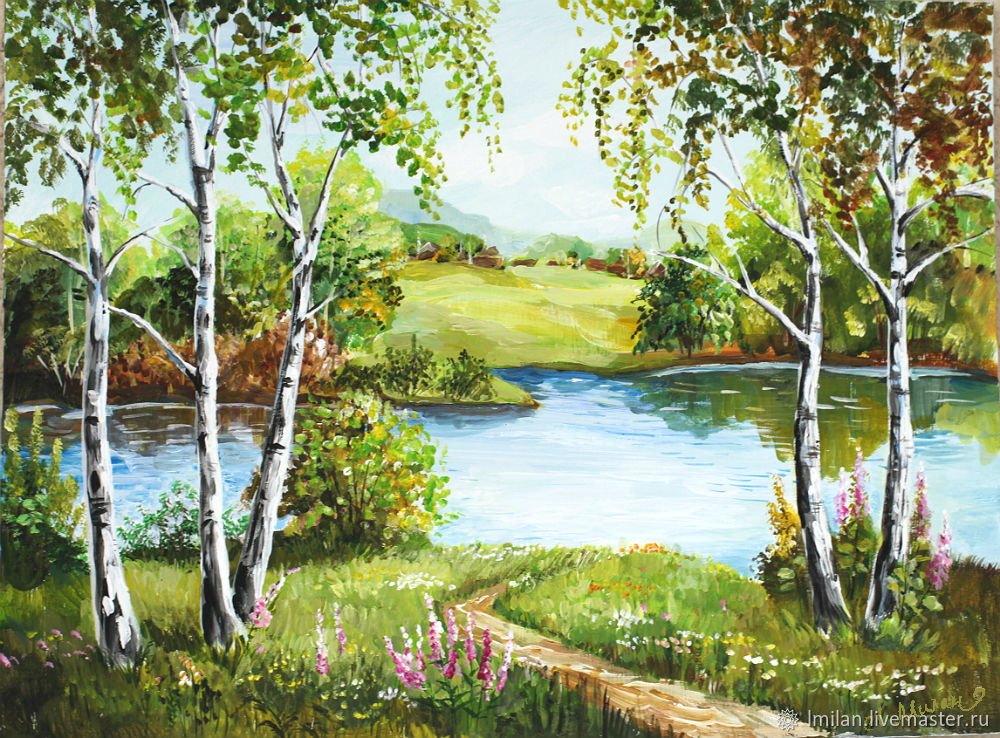Летний пейзаж гуашью