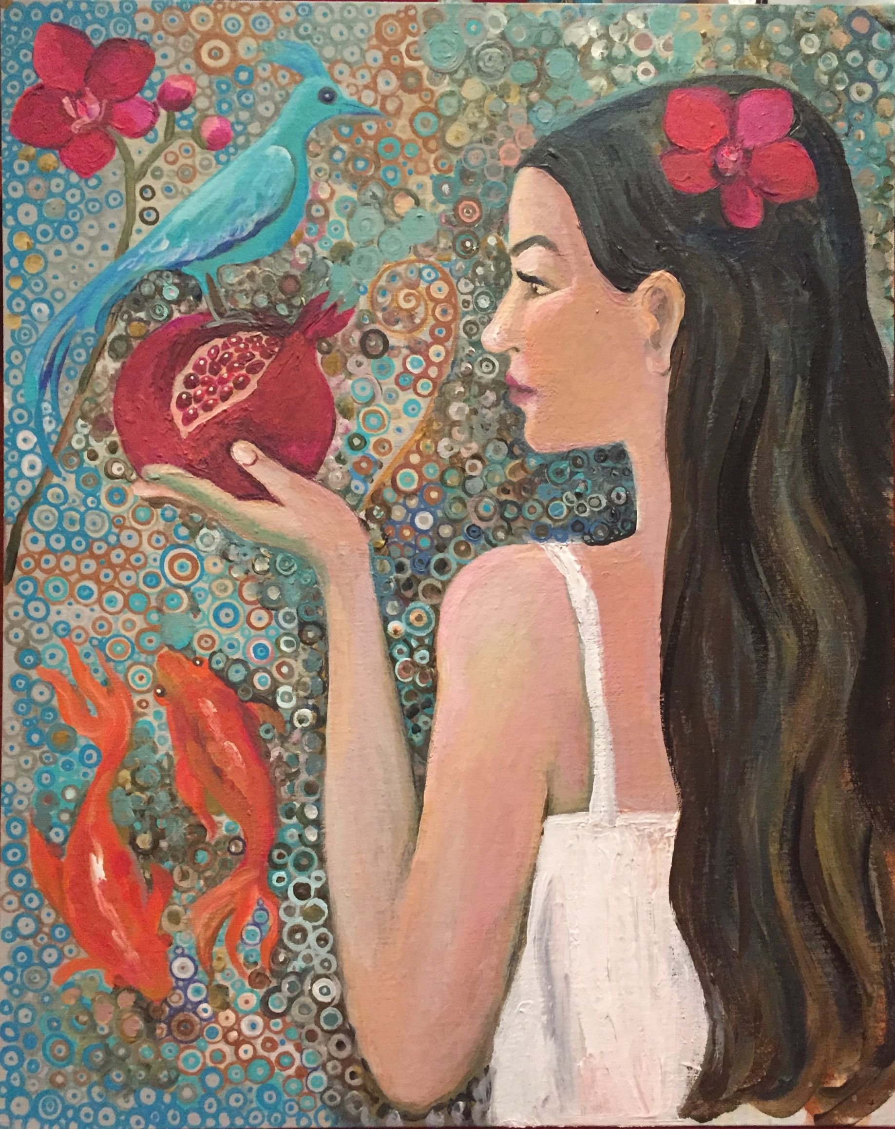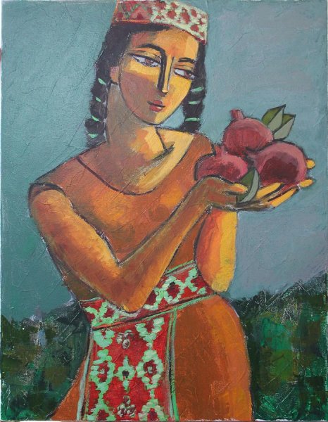 Девушка с гранатом живопись