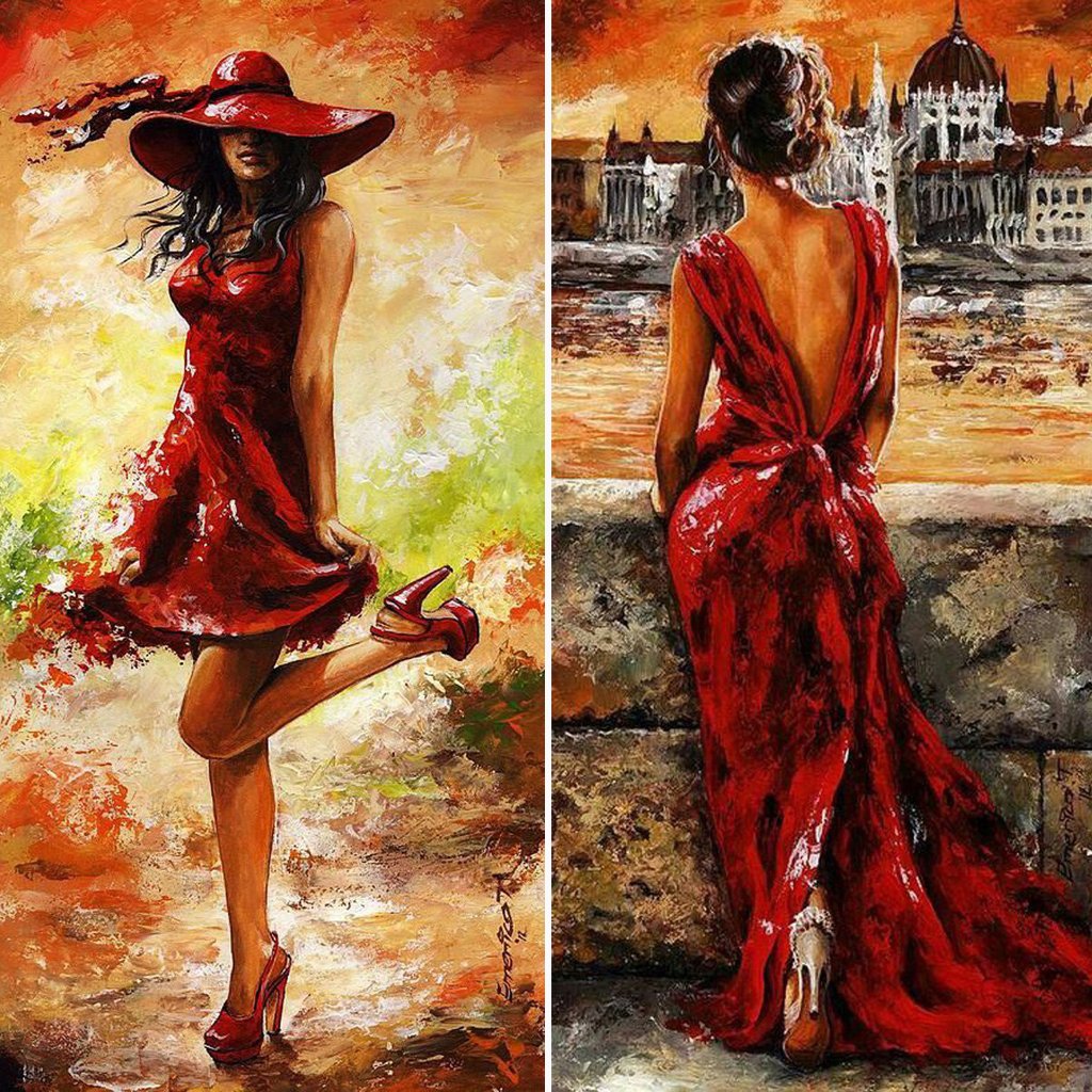 Картина девушка в Красном платье