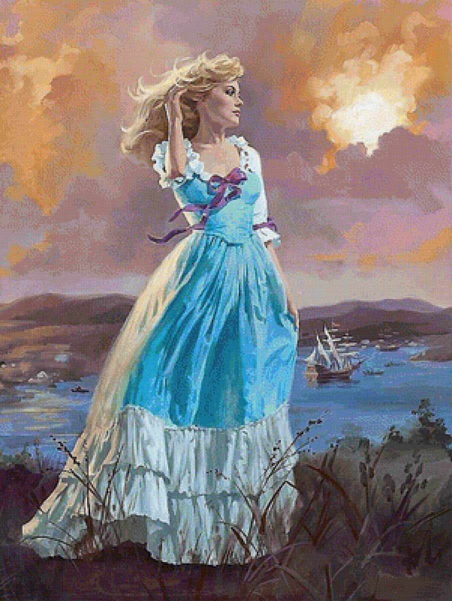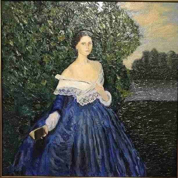 Девушка в синем платье живопись