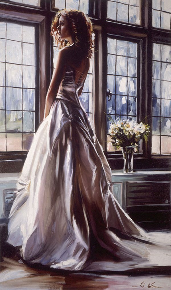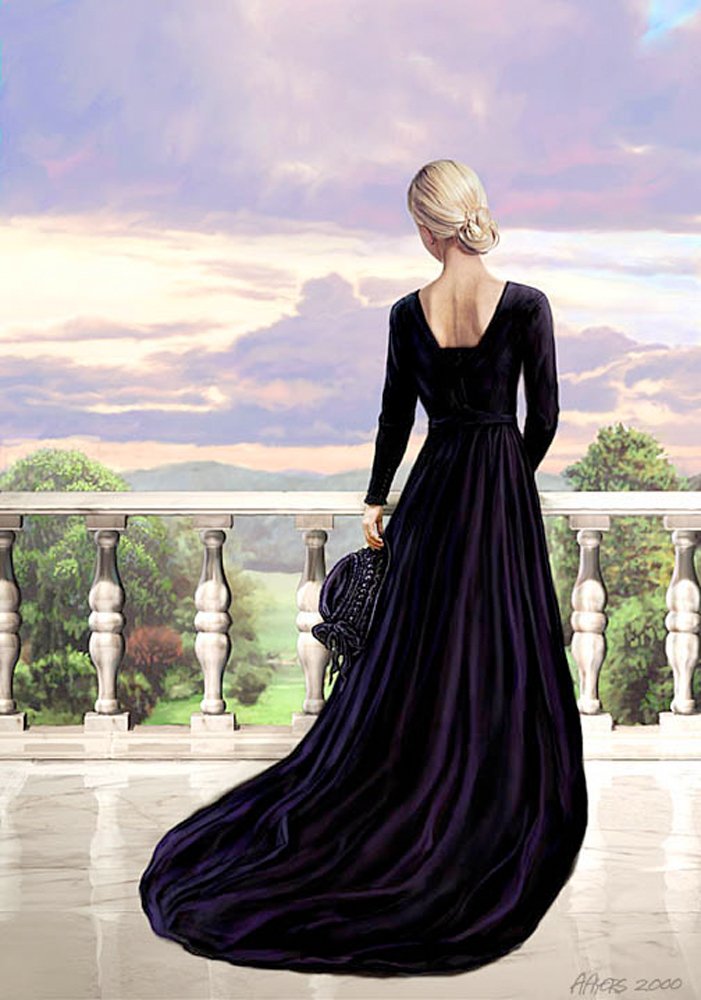 Девушка в длинном платье живопись