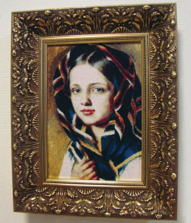 Картина девушка в клетчатом платке