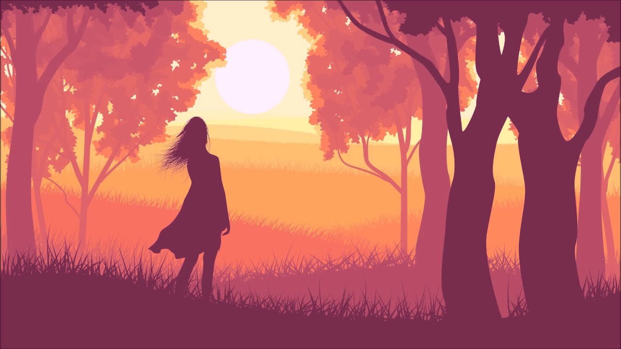 Силуэт девушки в лесу рисунок