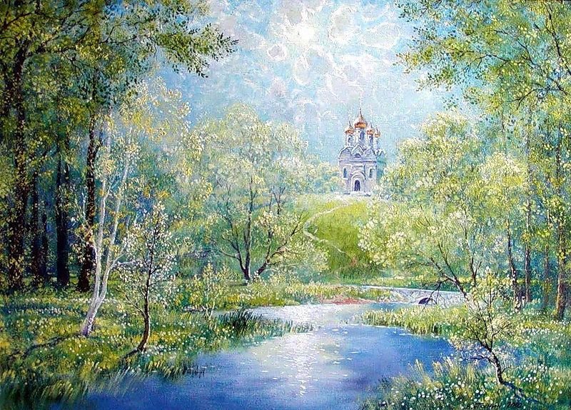 Весенний пейзаж с Церковью