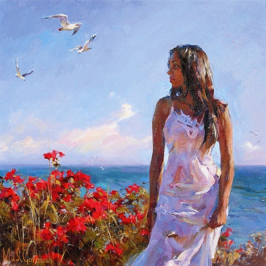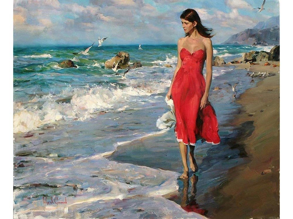 Девушка и море живопись
