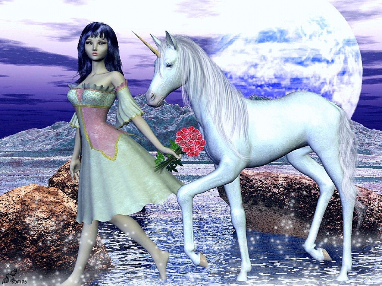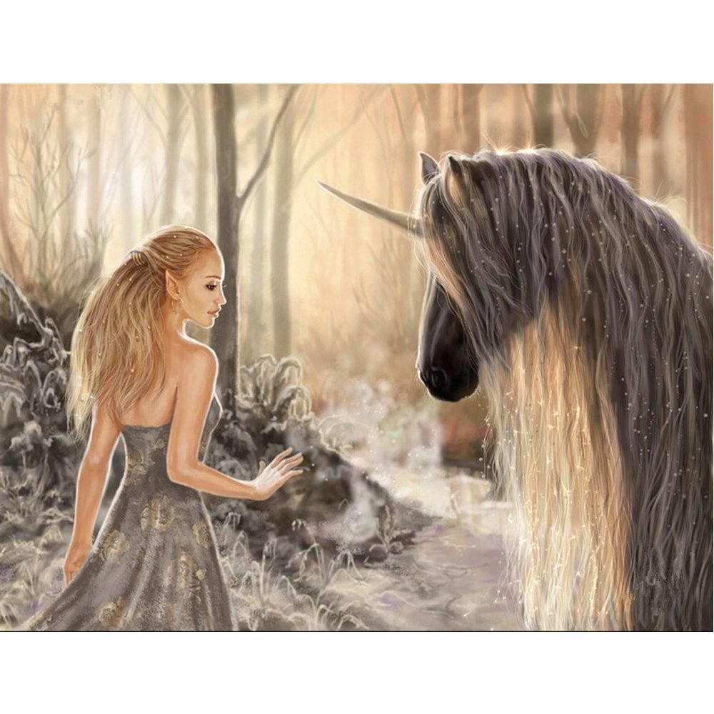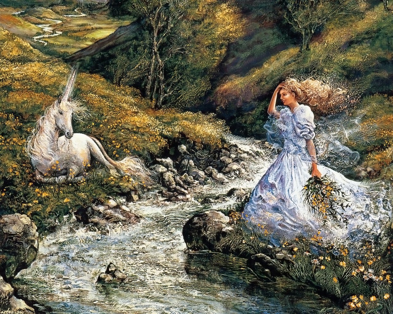 Девушка и Единорог фэнтези