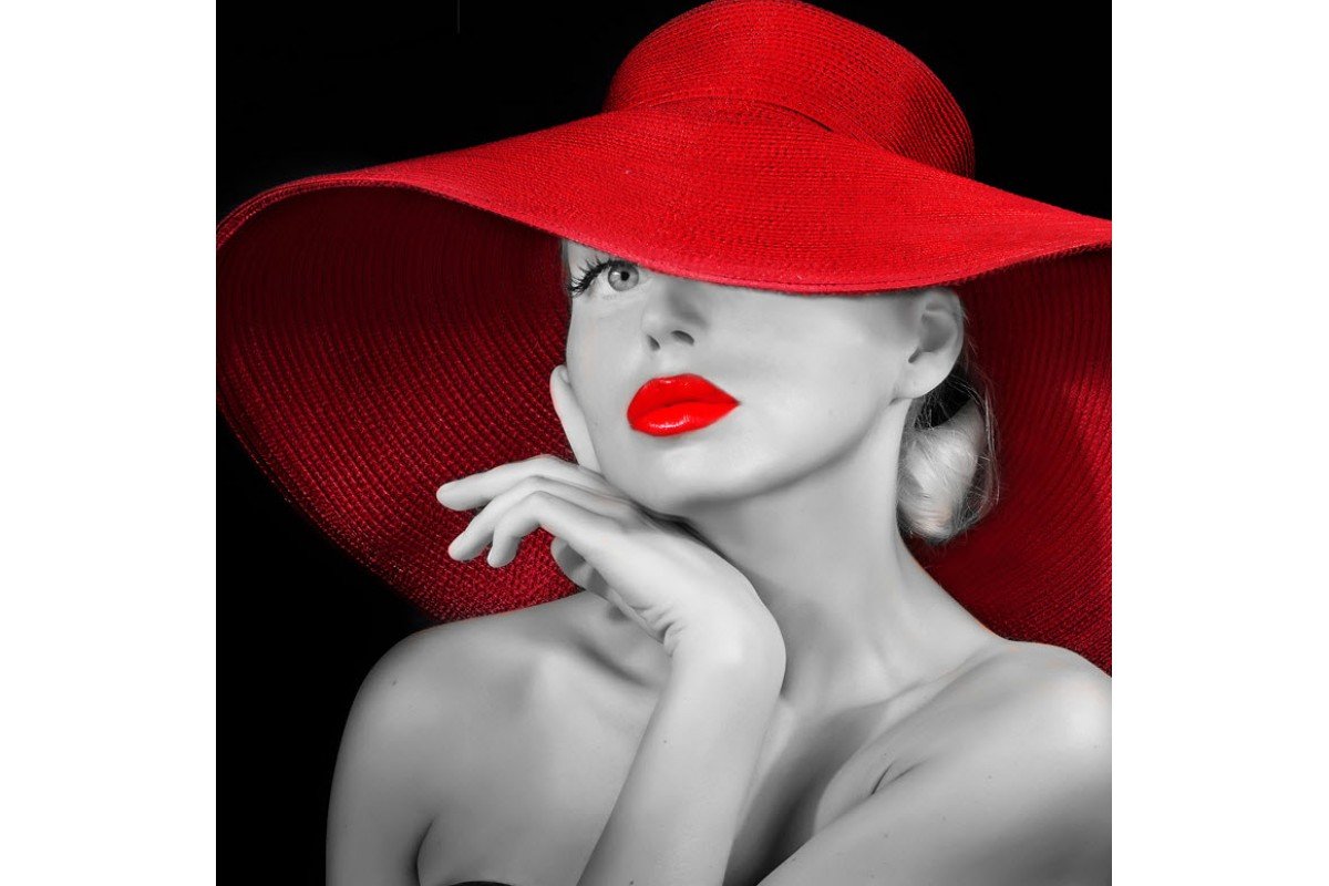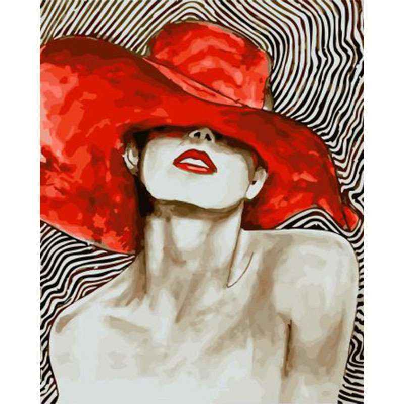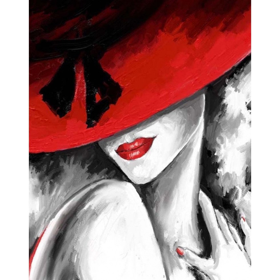 Картина женщина в шляпе с красными губами