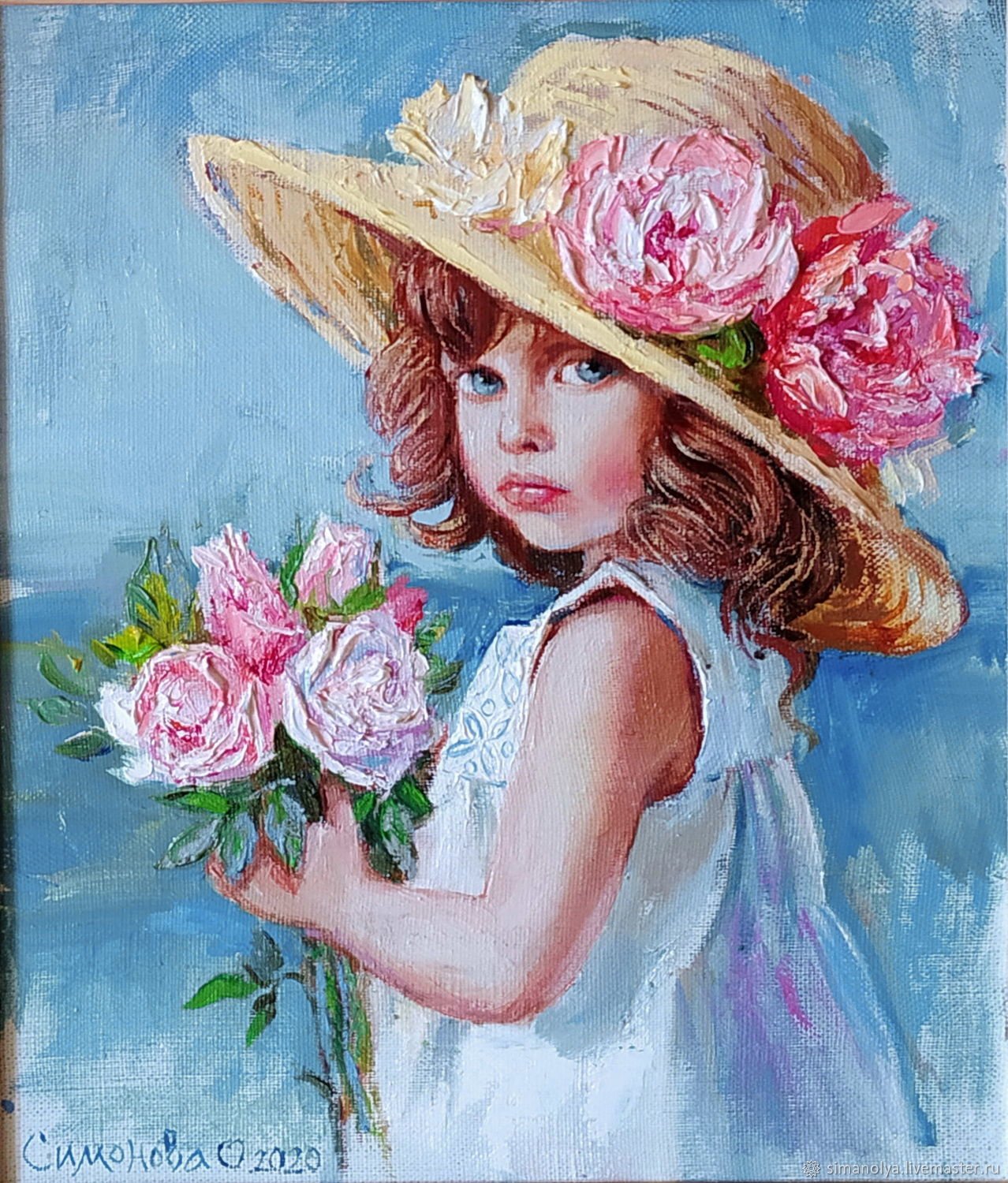 На нашей уникальной картине представлена красивая и загадочная девушка в шляпке с цветами. Она притягивает взгляды своей изящностью и неповторимым образом. Шляпка, украшенная яркими цветами, придаёт ей особую привлекательность и добавляет романтичности её облику. Взгляд девушки полон тайны и элегантности, заставляя задуматься о её истории и чувствах. Картина создаёт атмосферу загадочности и вдохновляет на размышления о жизни и красоте. Это идеальное произведение искусства, которое подойдёт для любителей художественных шедевров и тех, кто ценит уникальность и эстетику в искусстве.