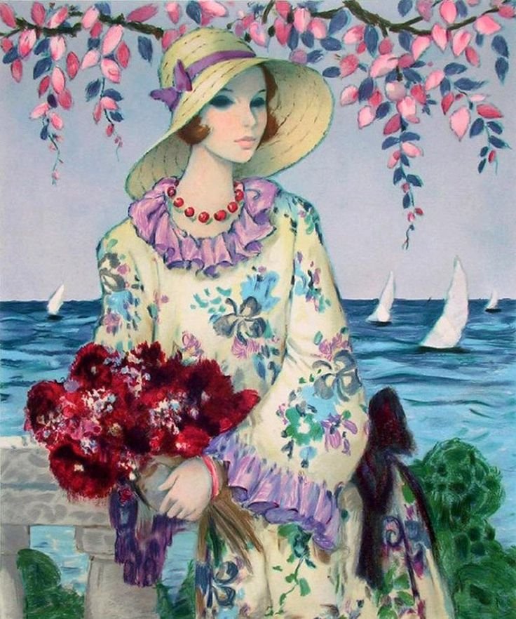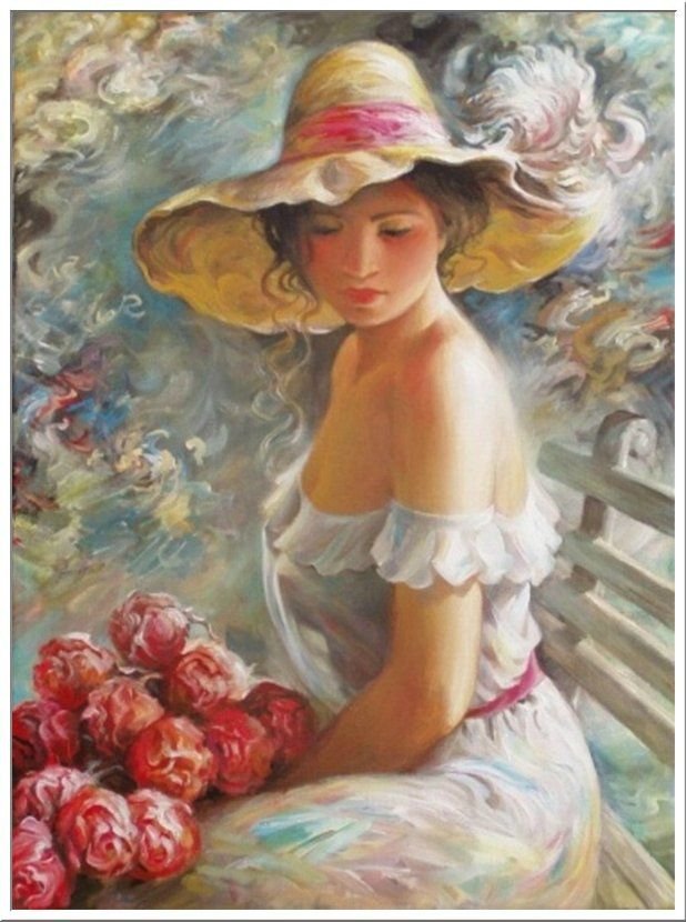 Картина женщина в шляпе с цветами