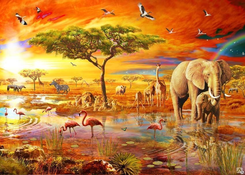 Картина для детей "Африка" - это яркое и увлекательное художественное произведение, которое погружает малышей в захватывающий мир этого загадочного континента. На этой картины изображены разнообразные животные, такие как слоны, львы, зебры и жирафы, которые обитают на просторах Африки. Они предстают перед глазами детей в своей неповторимой красоте и экзотичности. Композиция полна динамизма и энергии, вызывая у детей интерес и желание узнать больше о животных и природе этого удивительного места. Картина "Африка" подходит для декорирования детской комнаты или игрового пространства, создавая атмосферу приключений и открытий. Она станет не только прекрасным элементом интерьера, но и отличным способом расширить знания и рассказать детям о красоте и разнообразии нашего мира.