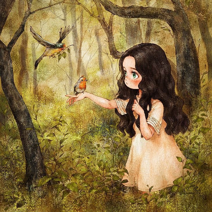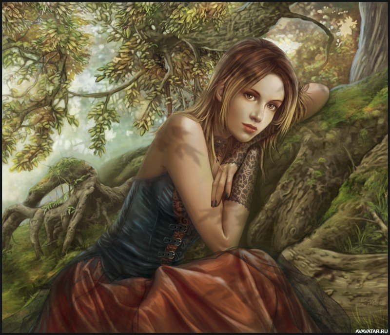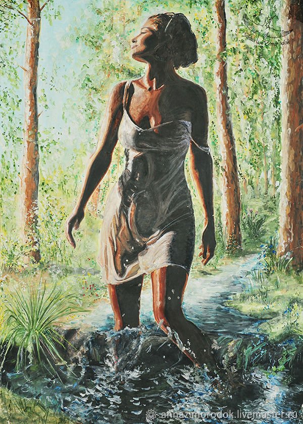 В волшебном лесу, где солнечные лучи проникают сквозь густую листву, расположилась одна из самых загадочных и прекрасных картин. На ней изображена девушка, окруженная буйством природы. Ее красота и естественность сливаются с окружающей ее просторной тишиной. Одета она в простое платье, которое подчеркивает ее природную красоту и женственность. Взгляд ее полон загадочности и нежности, словно отражение самого леса, который окружает ее. Картина воссоздает атмосферу спокойствия и гармонии, в которой находится девушка, и приглашает зрителя провести несколько мгновений в мире природной красоты и внутреннего покоя.