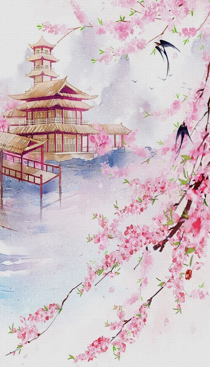 Японская живопись пагода