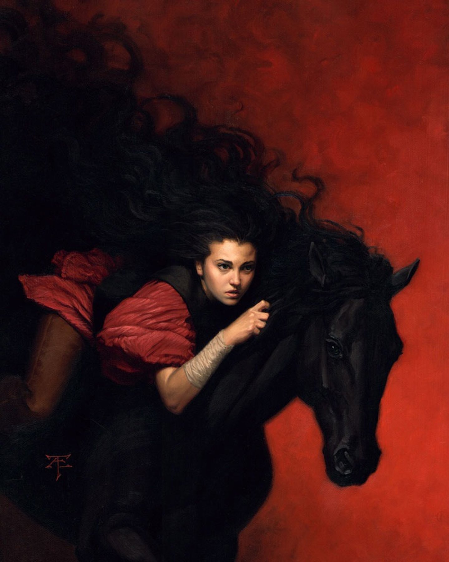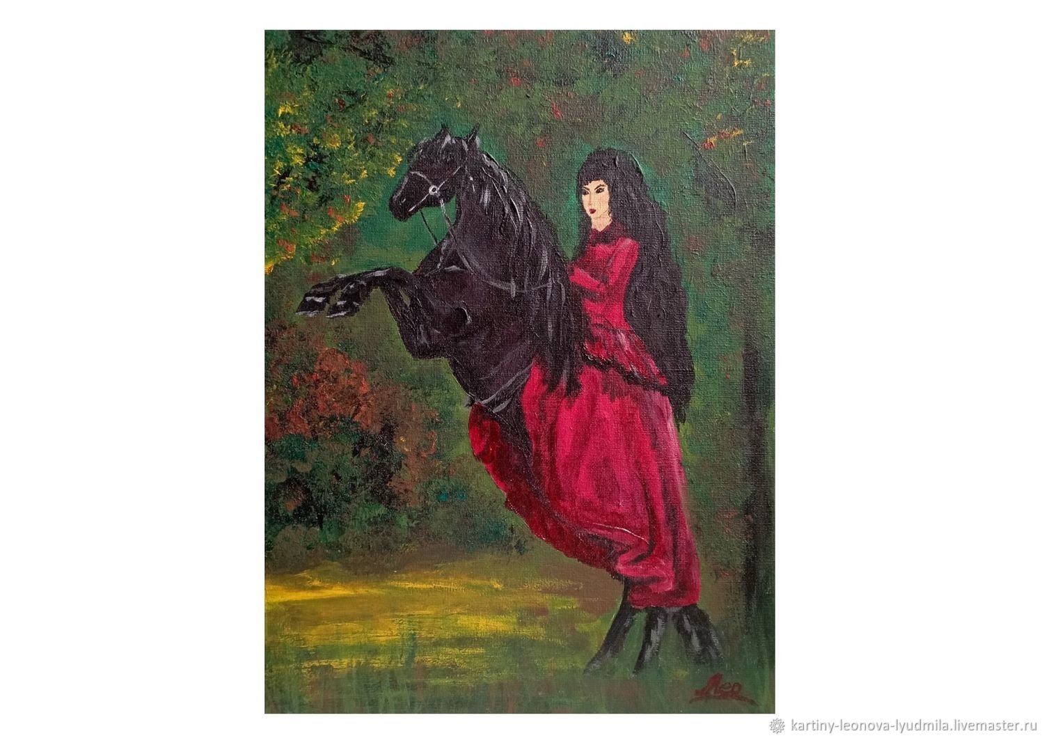 Картина девушка на черном коне