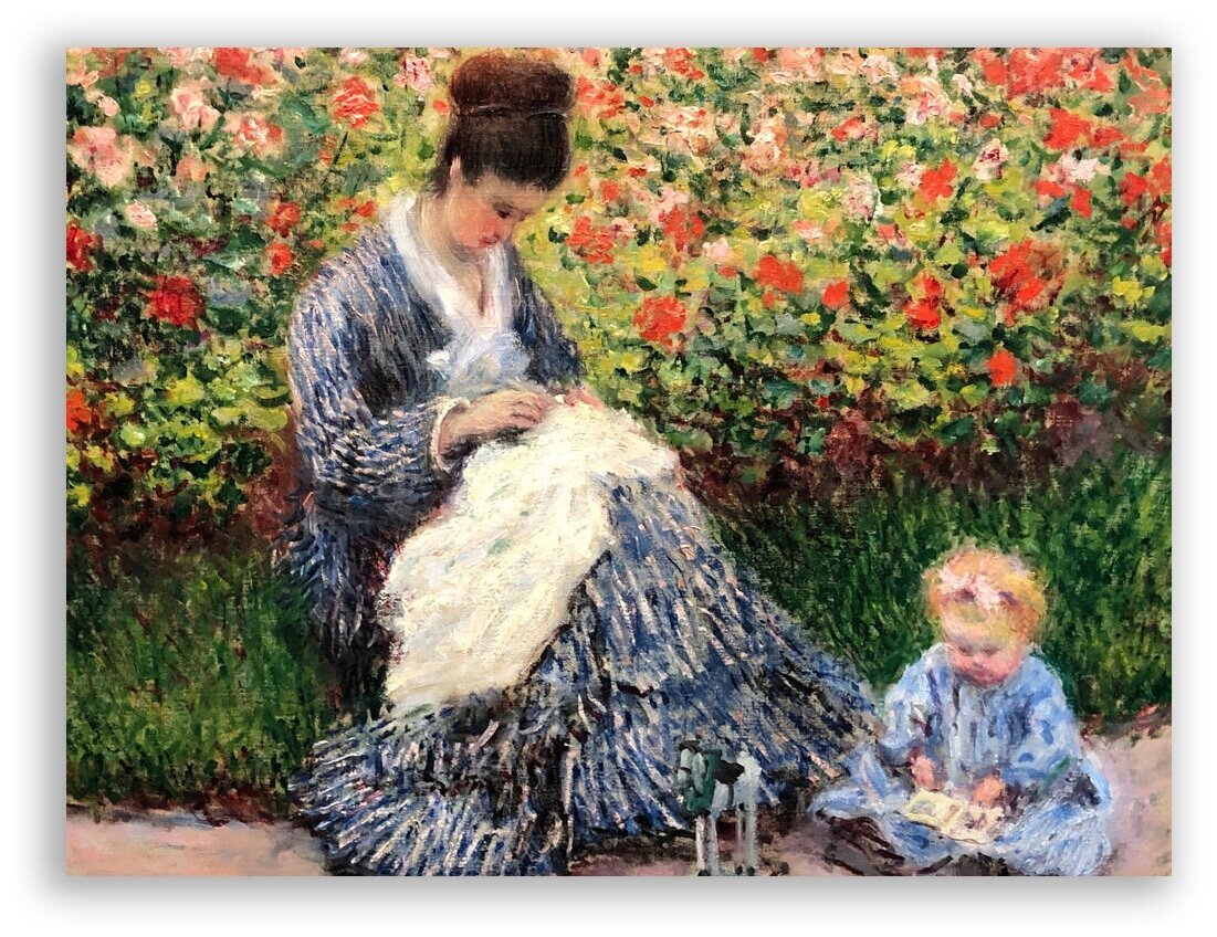 Мадам Моне с ребёнком в саду художника в Аржантее