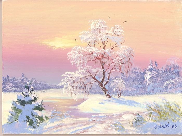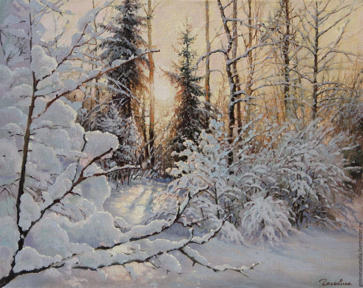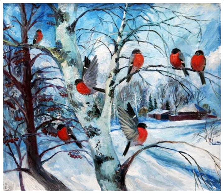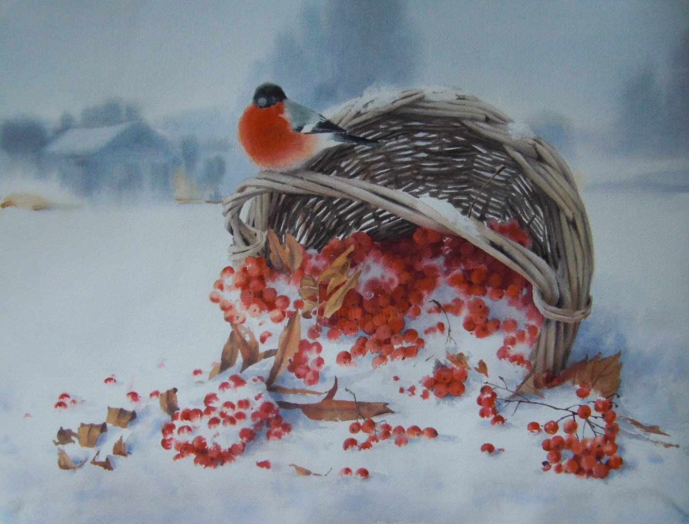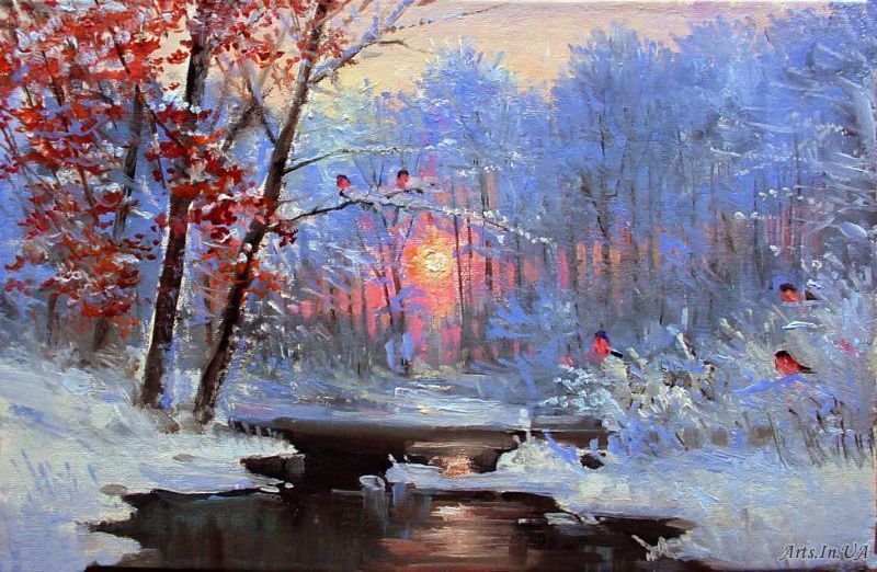 Художник Нестерчук Степан зимний пейзаж с рябиной