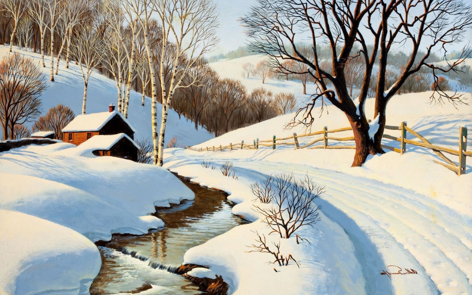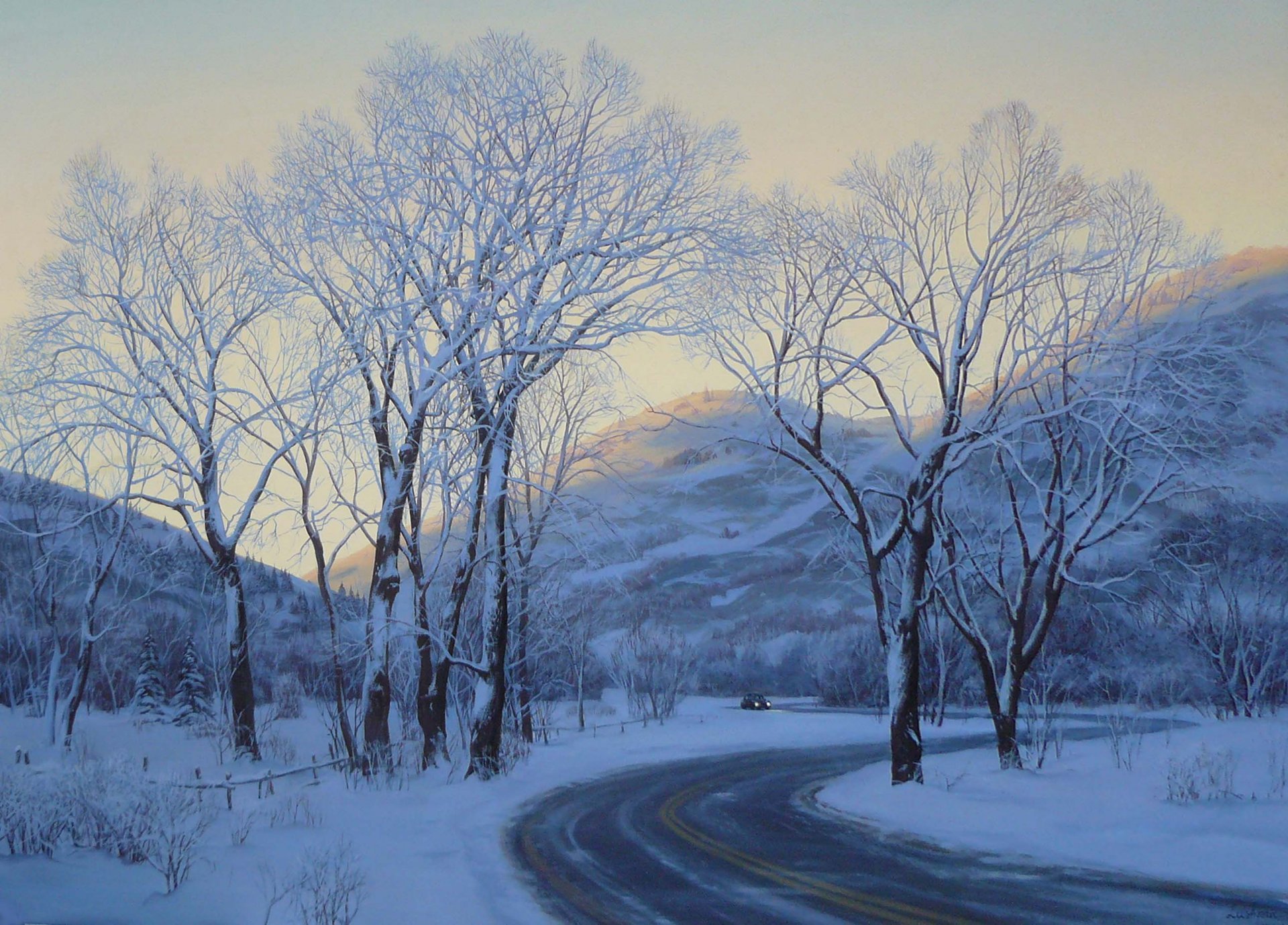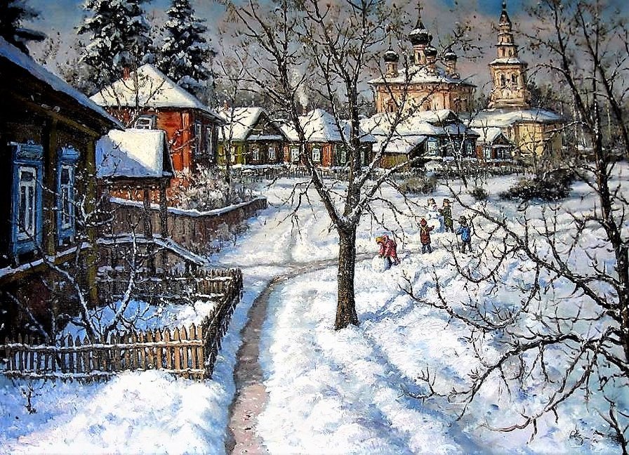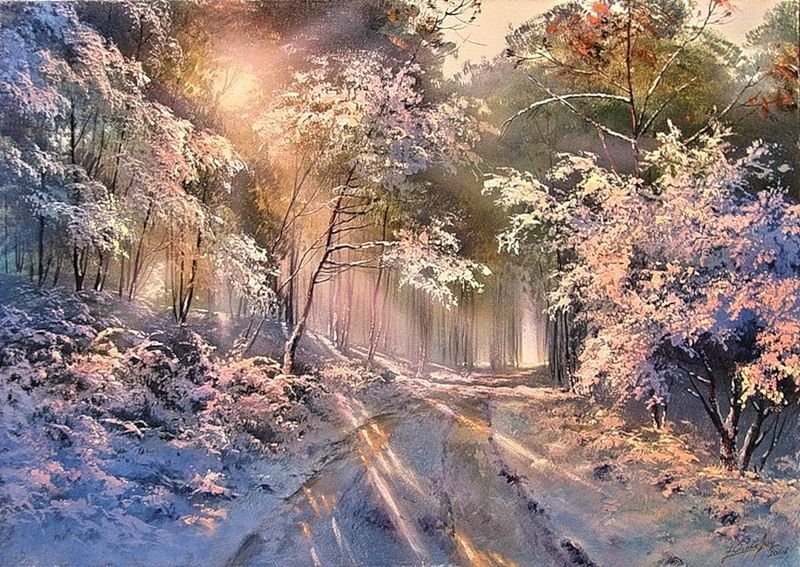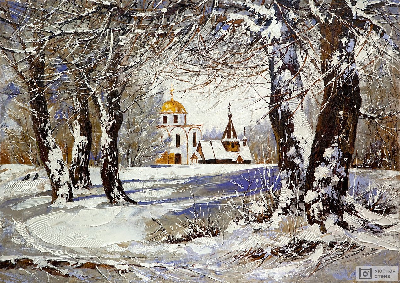 Художник Нестерчук Степан зимний пейзаж с рябиной