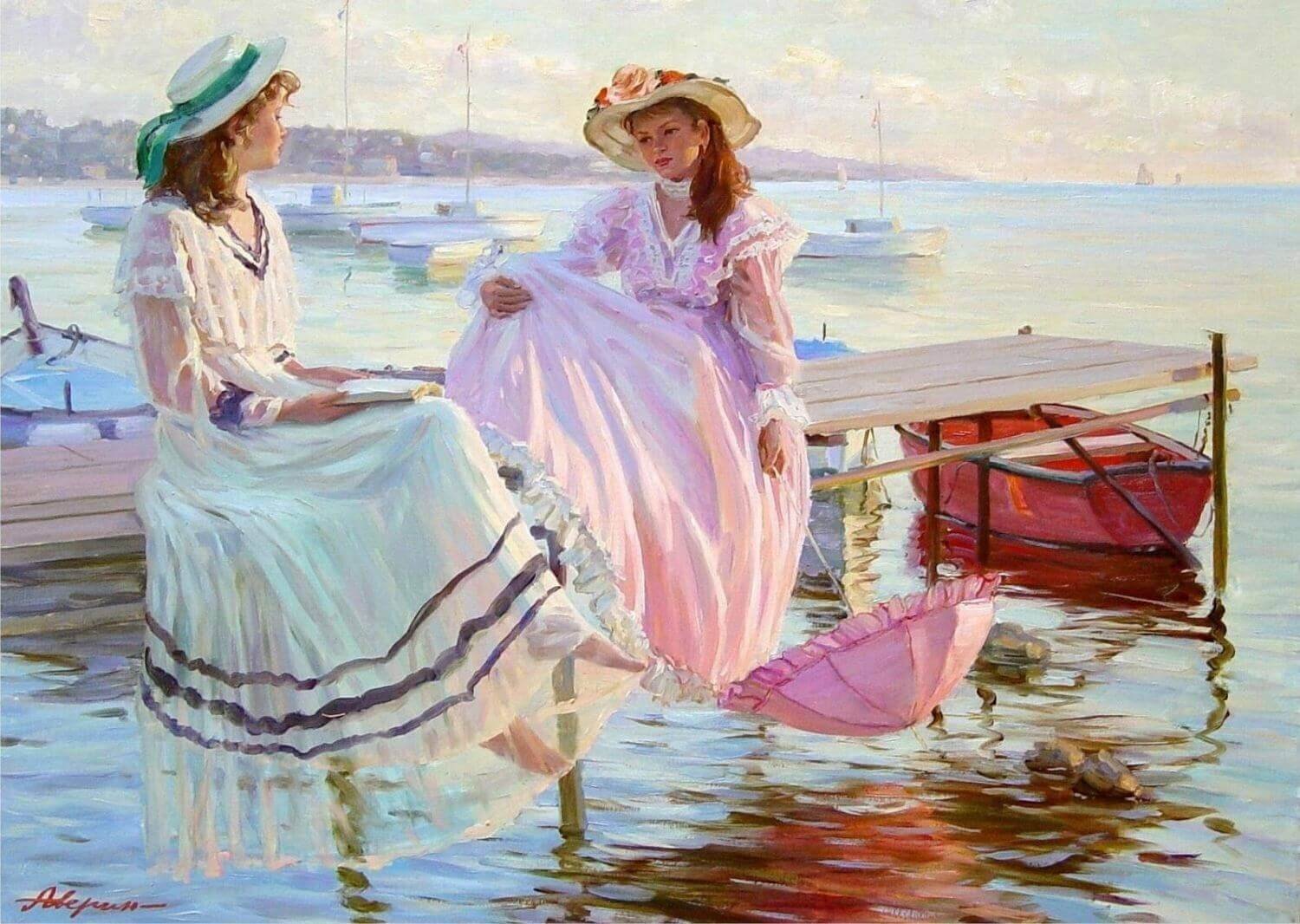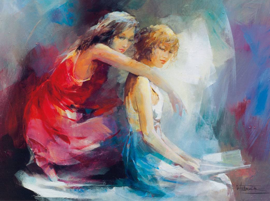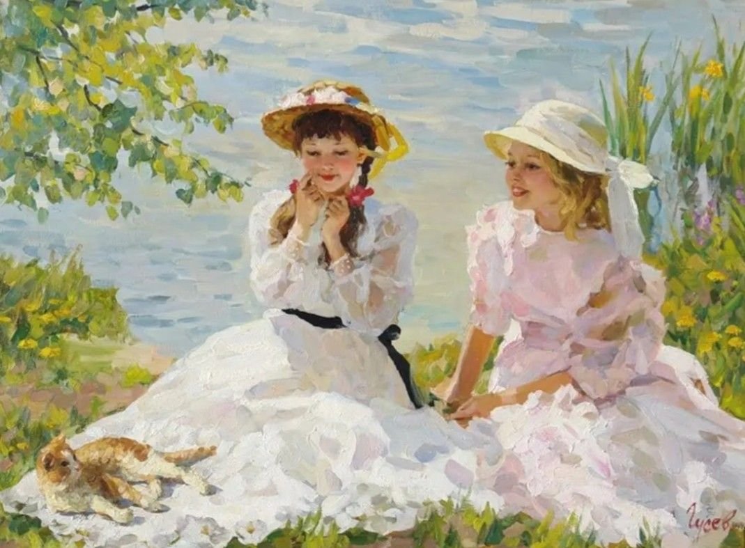 "Две девушки" - это картина, которая воплощает в себе красоту и грацию женской природы. На ней изображены две молодые женщины, окруженные яркими цветами и пышной растительностью. Картина привлекает взгляд своей эмоциональностью и нежностью, создавая атмосферу загадочности и таинственности. Она вызывает у зрителя множество разных чувств и ассоциаций, отражая разнообразие жизненных и душевных состояний. "Две девушки" - это произведение искусства, которое не только радует глаз, но и позволяет окунуться в мир красоты и эстетики, позволяя каждому наблюдателю насладиться прекрасным и мистическим образом женской красоты.