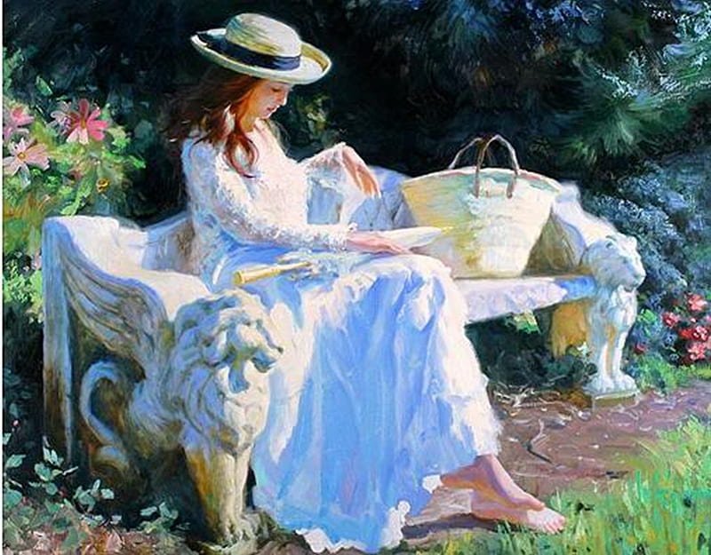 Михаил Нестеров. Наташа Нестерова (на садовой скамейке). 1914