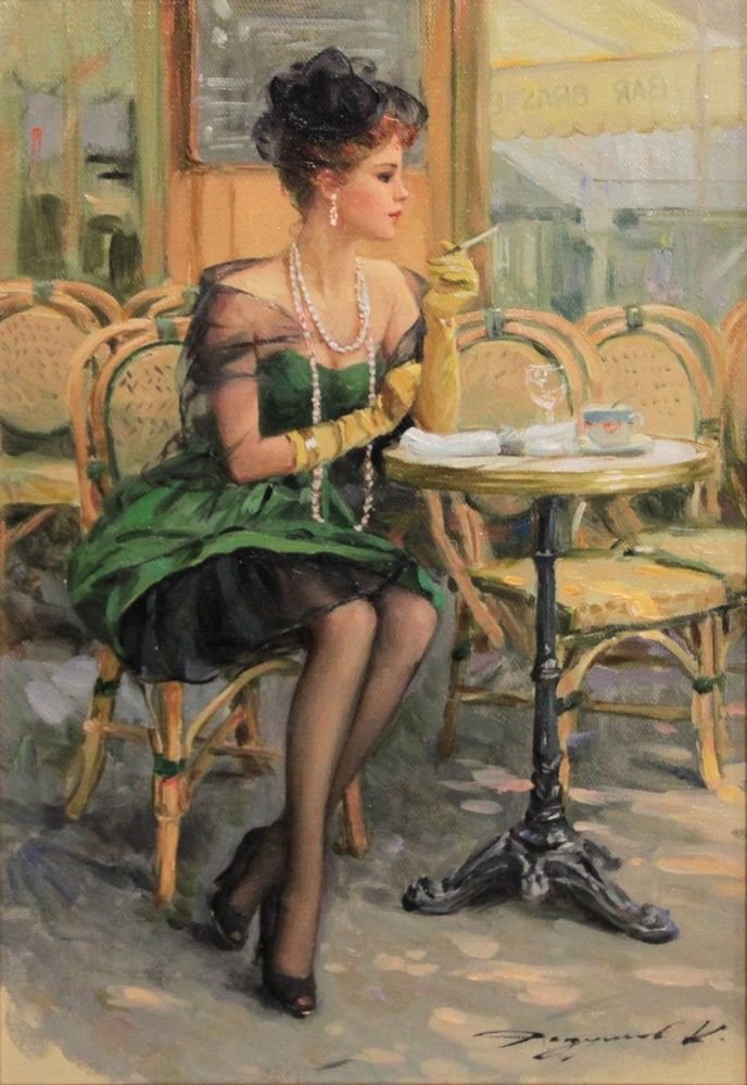 Константин Разумов картины женщина в парижском кафе