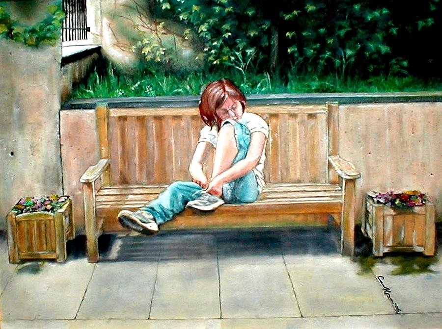 Сидящая с книгой девушка в профиль