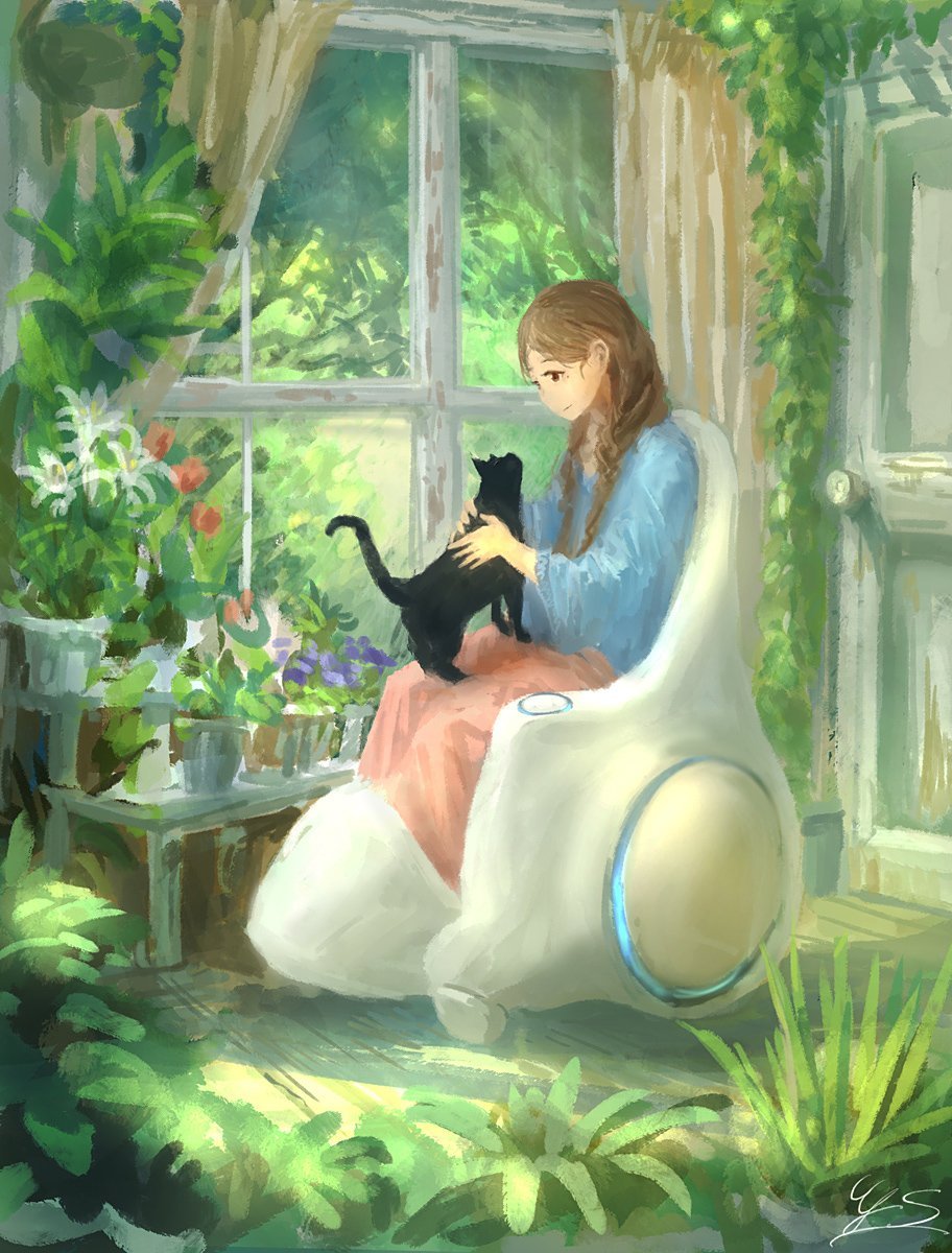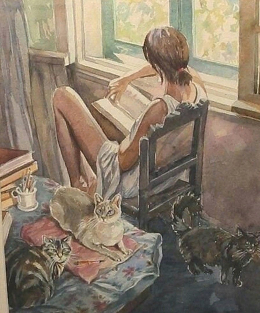 Девушка с котом на подоконнике