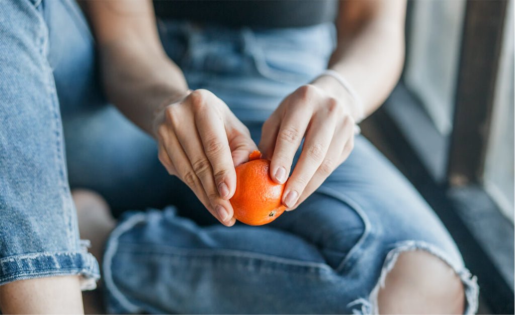 Девушка ест мандарин
