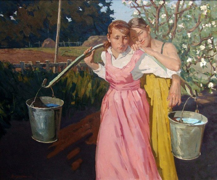 "Девушка с коромыслом" - это известная картина, которая была написана одним из великих художников. На этой работе изображена молодая женщина, которая держит в руках коромысло, символизирующее тяжелую работу и усилия, которые она прикладывает для своего существования. Взгляд девушки выражает глубокую мысль и интроспекцию, позволяя зрителю войти в ее мир и почувствовать ее эмоции. Картина представляет собой не только талант художника, но и стимулирует зрителя задуматься о смысле жизни, ценности труда и внутренней силе человеческого духа.
