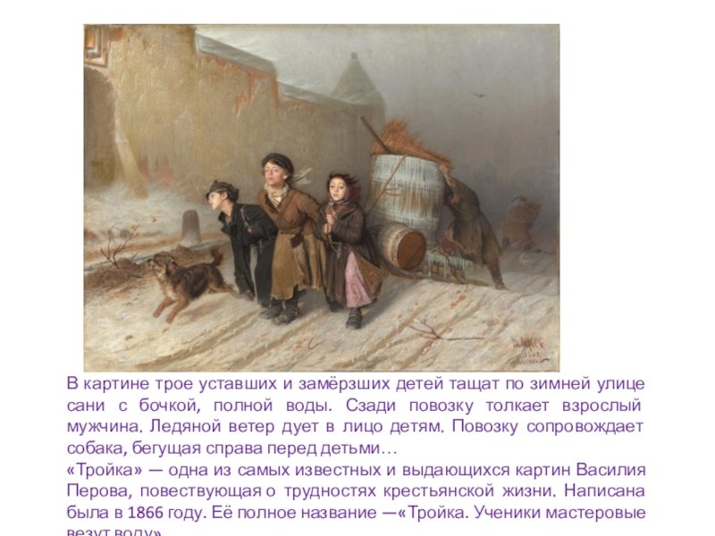 Василий Перов. Тройка. Ученики-мастеровые везут воду. 1866